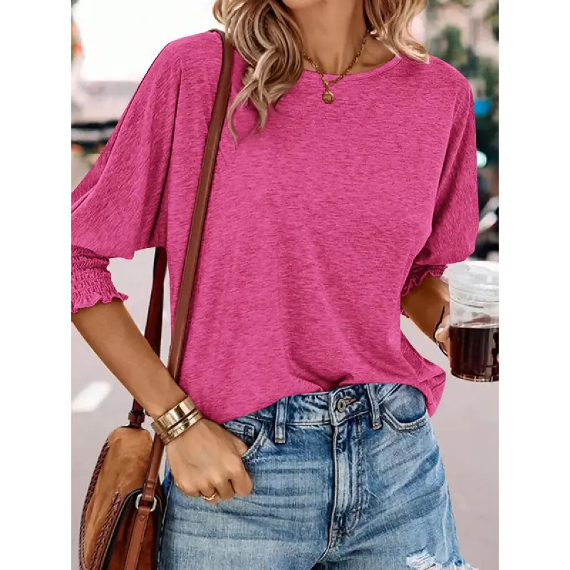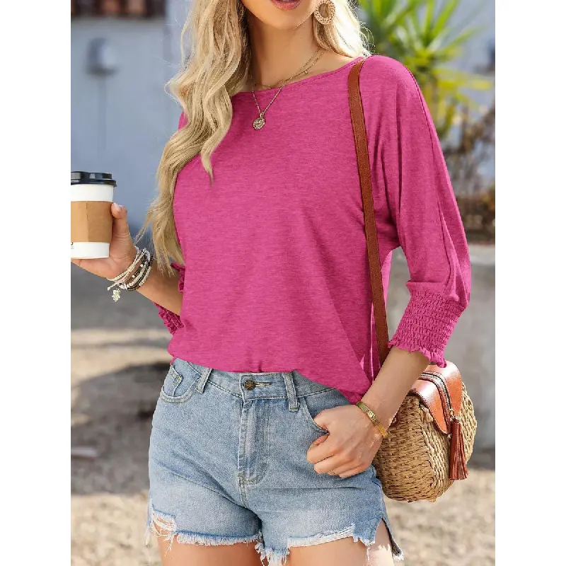 Stay stylish and comfortable all day with Casual Tops for Women!Perfect for the Summer and Fall seasons, these T-shirts feature 3/4 puff sleeves and a crewneck design.
