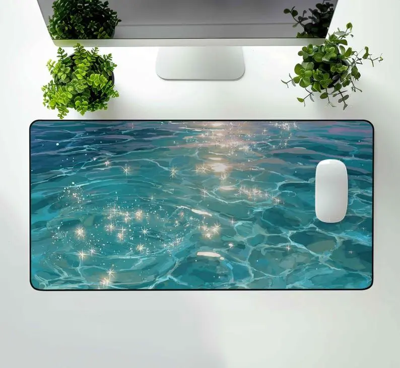 [SALE UP TO 50% + FREE SHIP] Sparkling Ocean Desk Mat Blue Water Mousepad Aesthetic Sea Desk Pad Office