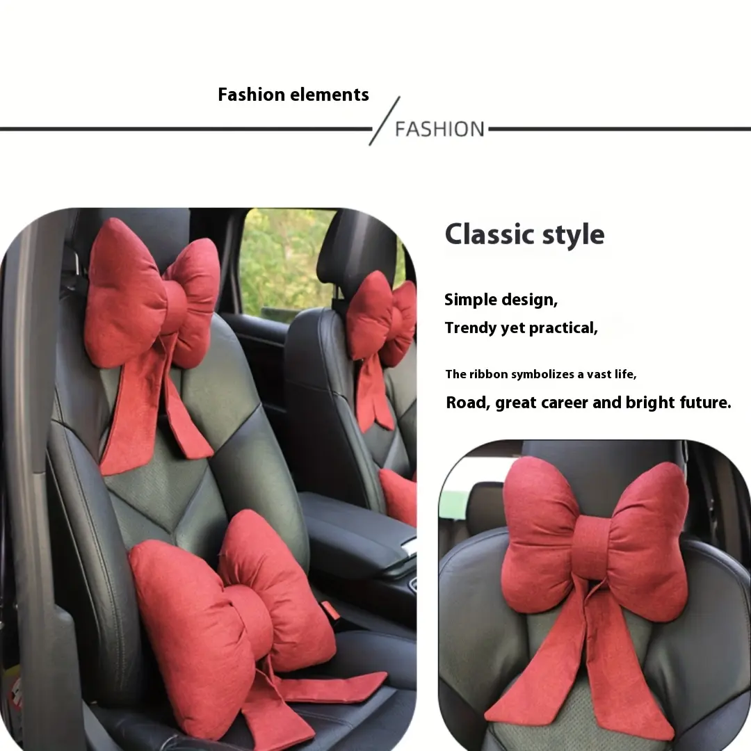Elevate your car's interior charm and comfort with this adorable pink bow-shaped headrest pillow—the perfect blend of cute aesthetics and practical support.