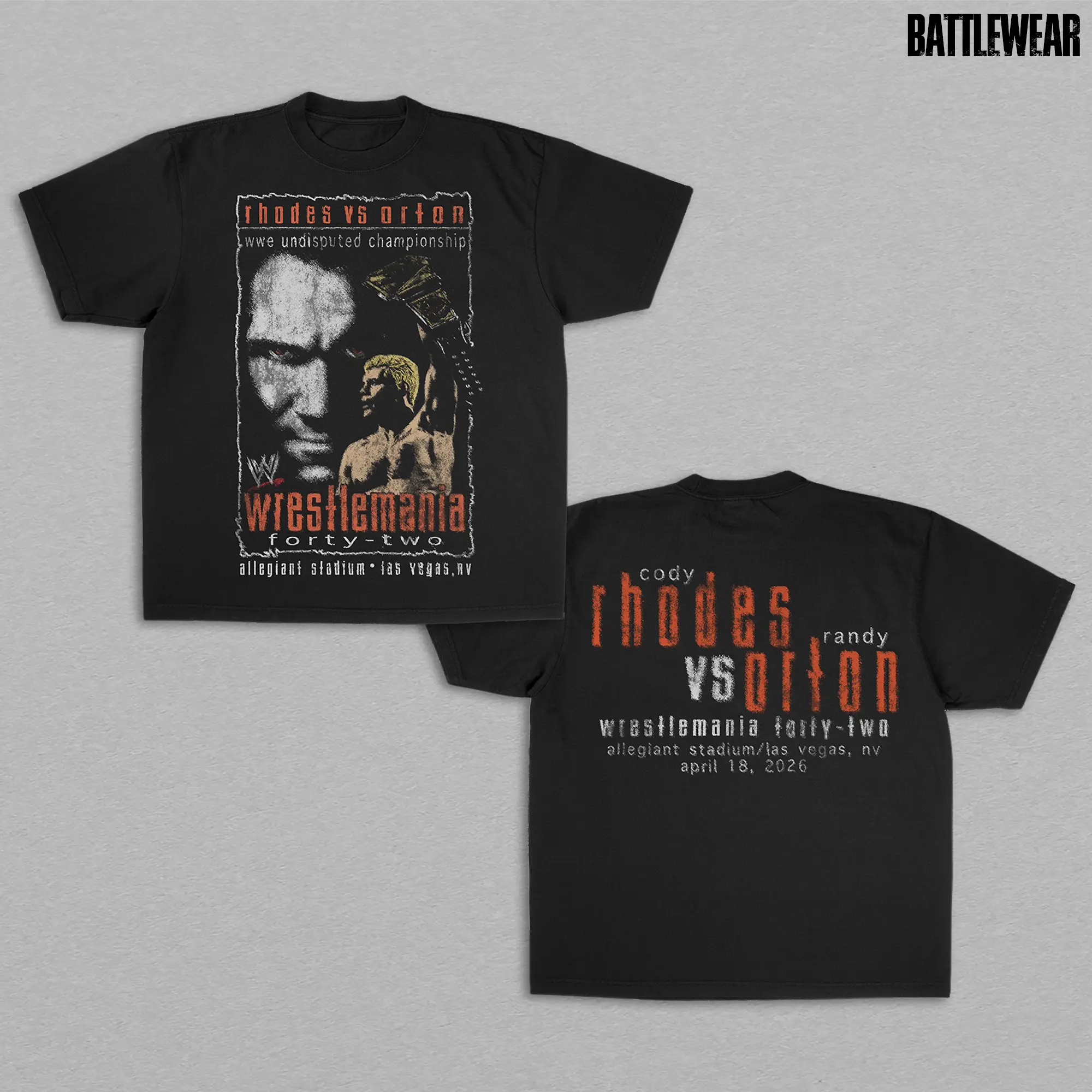 WrestleMania 2026 T-Shirt, Cody Rhodes vs Randy Orton Match Card Graphic Tee, Double Sided Heavy Cotton Wrestling Shirt, Las Vegas Event Streetwear