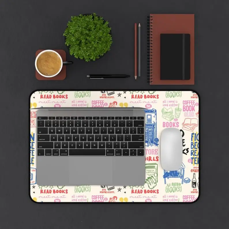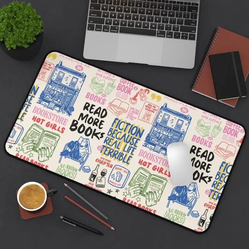 [SALE UP TO 50% + FREE SHIP] Bookish Hand Drawn Doodle Desk Mat Reading Fiction More Books Library Hot Girls Wine Office Decor Cute Work From Home Gaming Pad Mouse Pad