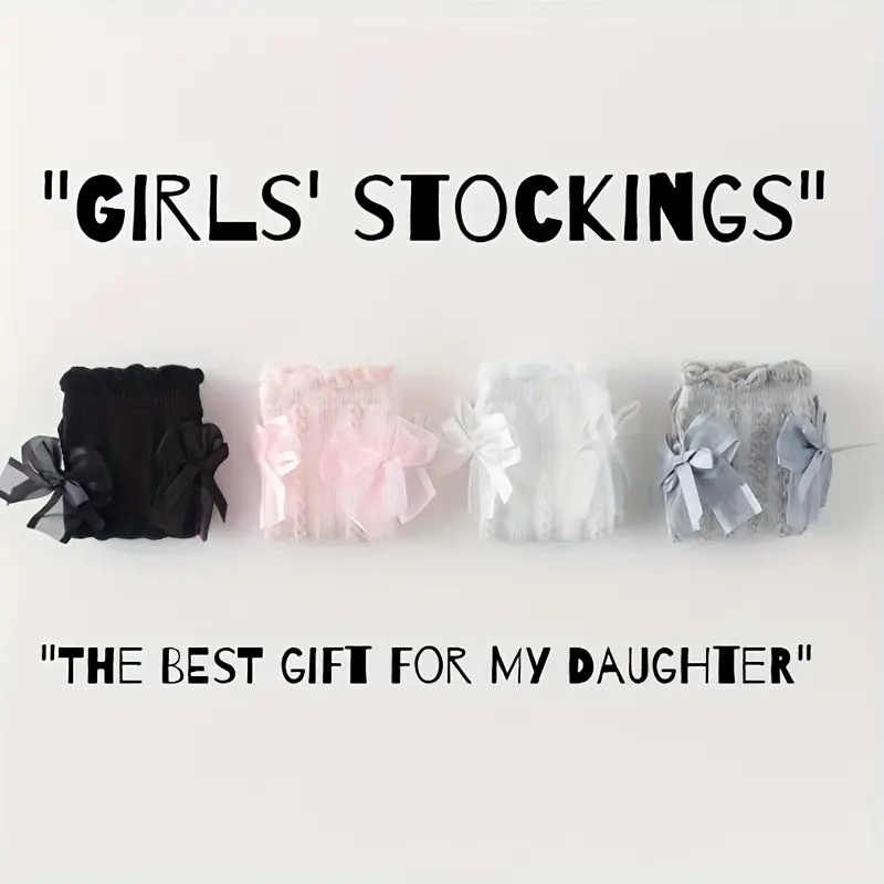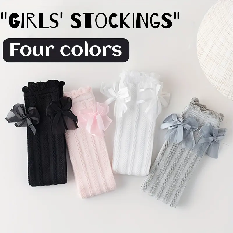 girl Long Stockings with Bow Decoration Soft Gradient Texture Tights Comfortable All Seasons for Daily Special Occasions