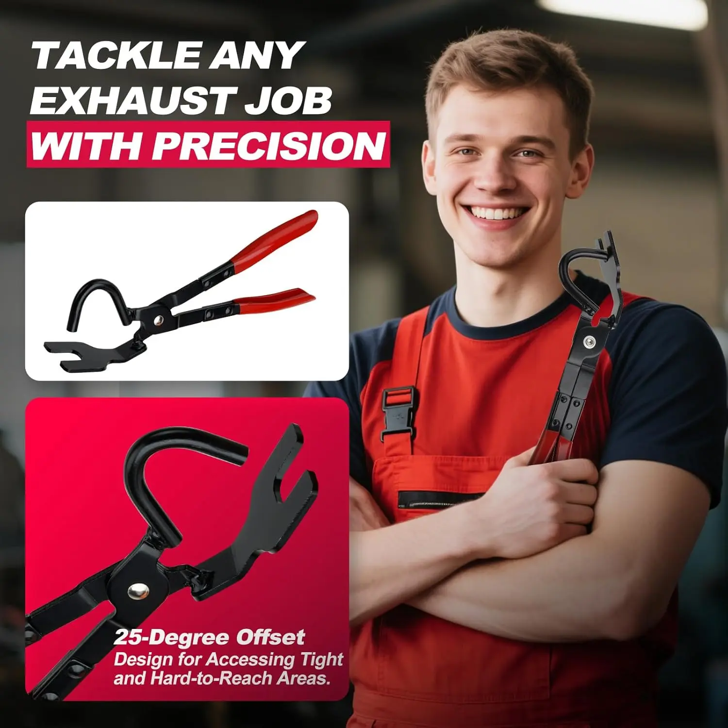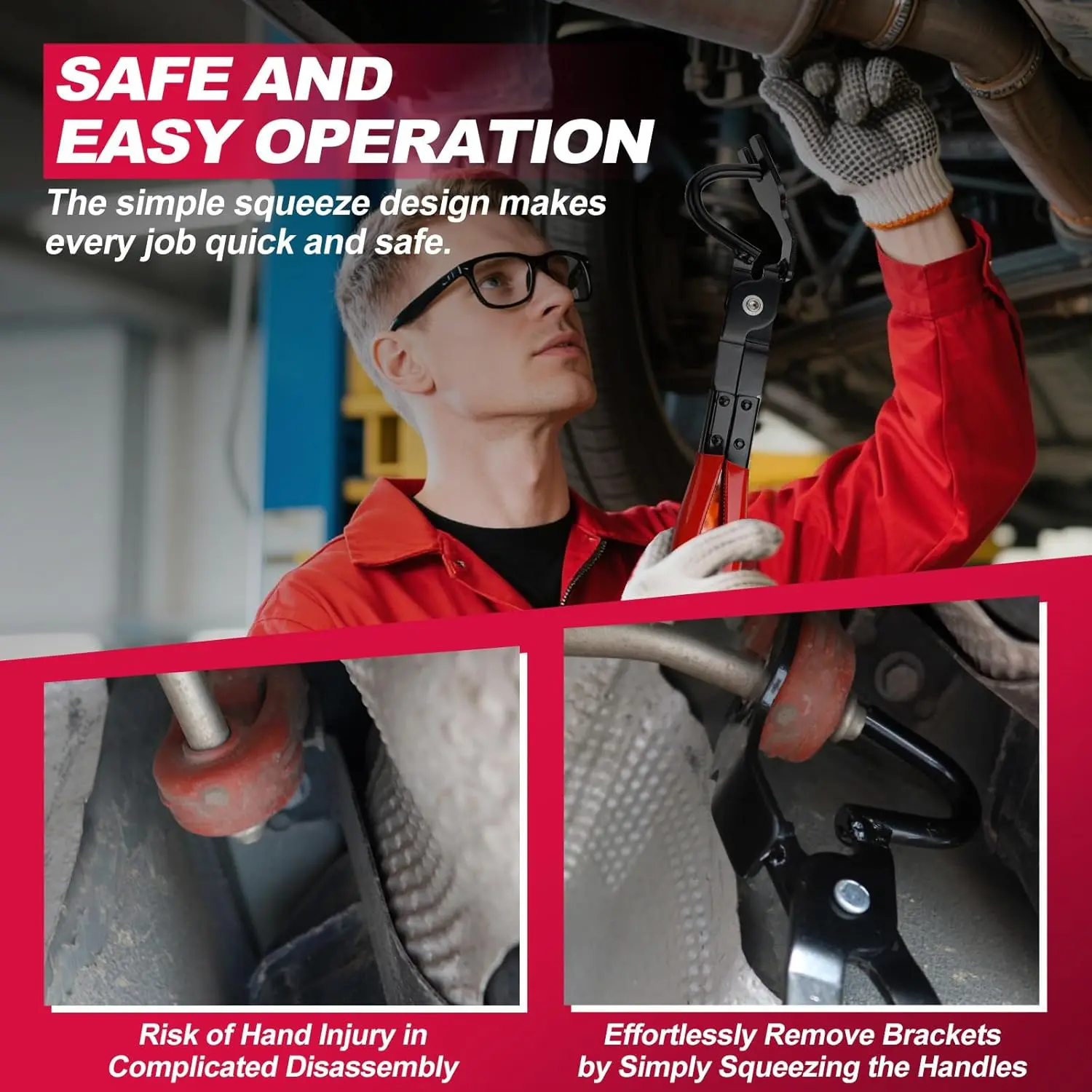 ·【Offset Jaw Design for Tight Spaces】: The 25° offset head helps you reach hanger brackets hidden deep under the car. No more awkward angles, scraped knuckles, or wasted time.