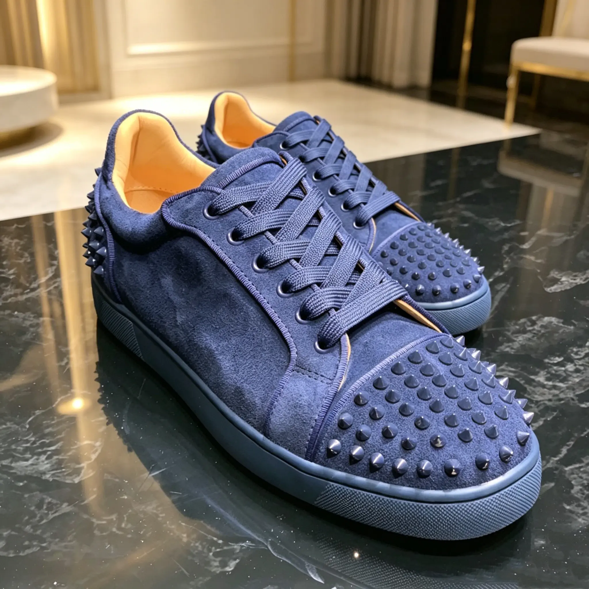 New men's trendy blue lace-up stylish low-top premium rivet comfortable versatile casual shoes