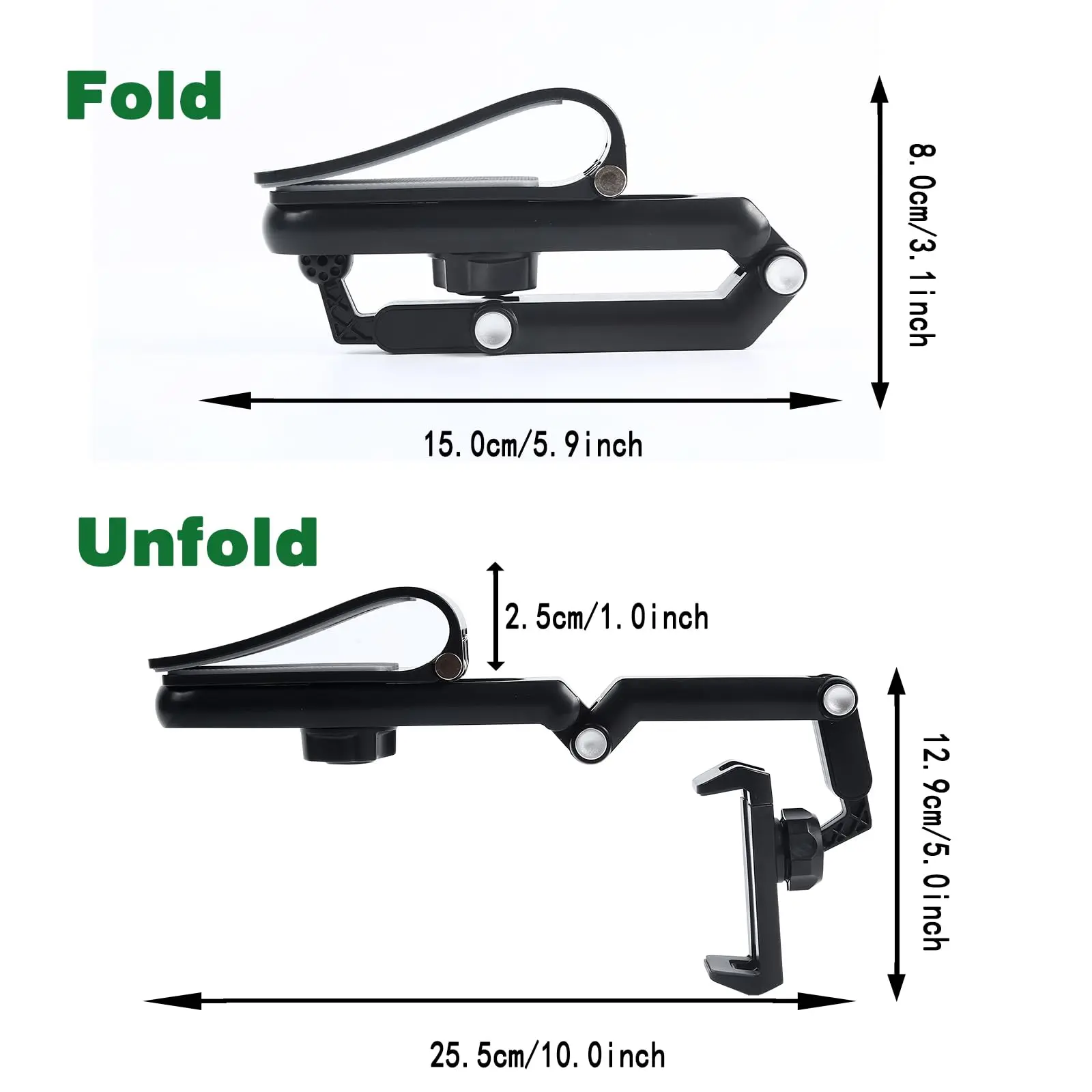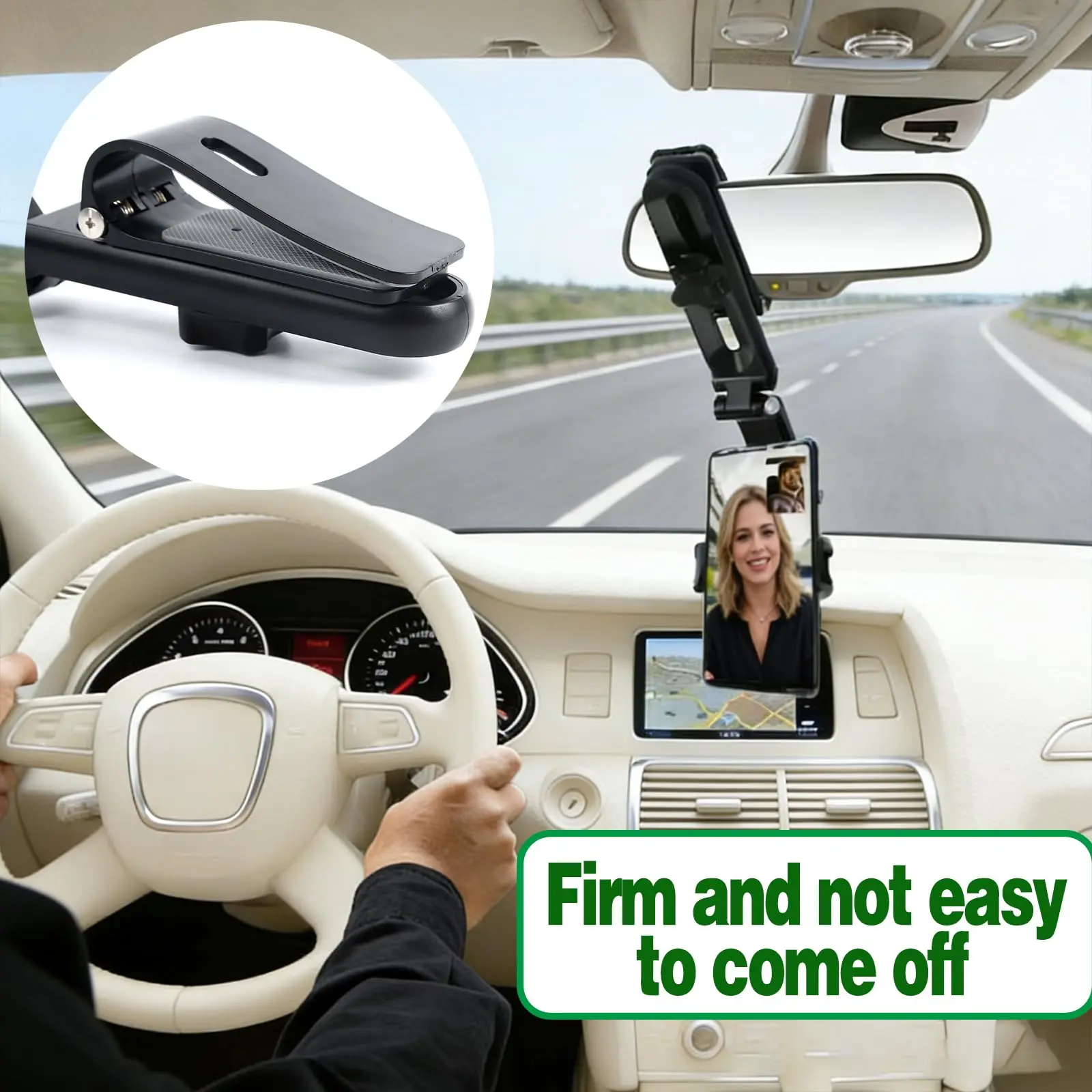 [High Flexibility]:the Sun Visor Phone Holder contains a 360° rotating ball joint and an adjustable telescopic arm. Conveniently to adjust your phone to any angle without blocking your sight—whether mounted on the visor, rearview mirror, or dashboard. This car sun visor phone holder helps you maintain focus on the road for a safer, more comfortable driving