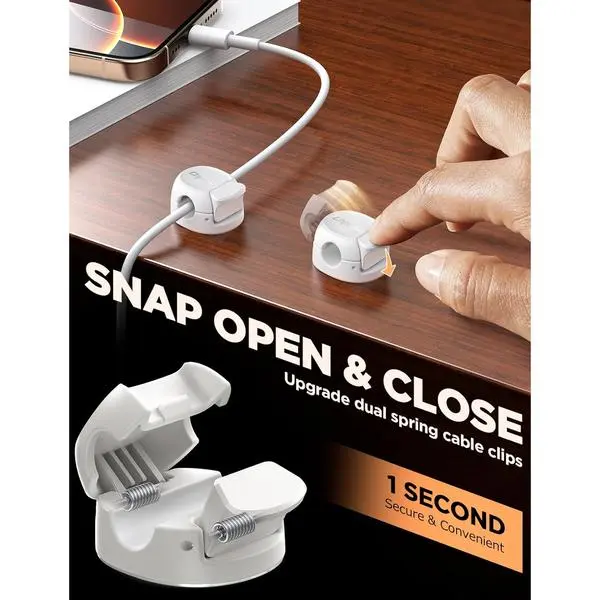 ·【Never Be Pulled Apart, Snap Open & Close】Chfeila's charging cord holder are a game-changer in cable management. Our revolutionary dual spring and clasp design ensures that your cables stay securely in place, no matter how much tugging or pulling they endure. The ingenious snap-open, soft-press mechanism makes adding or removing cables a breeze, providing a seamless user experience. Say goodbye to tangled cords and accidental disconnections that disrupt your workflow or relaxation time.