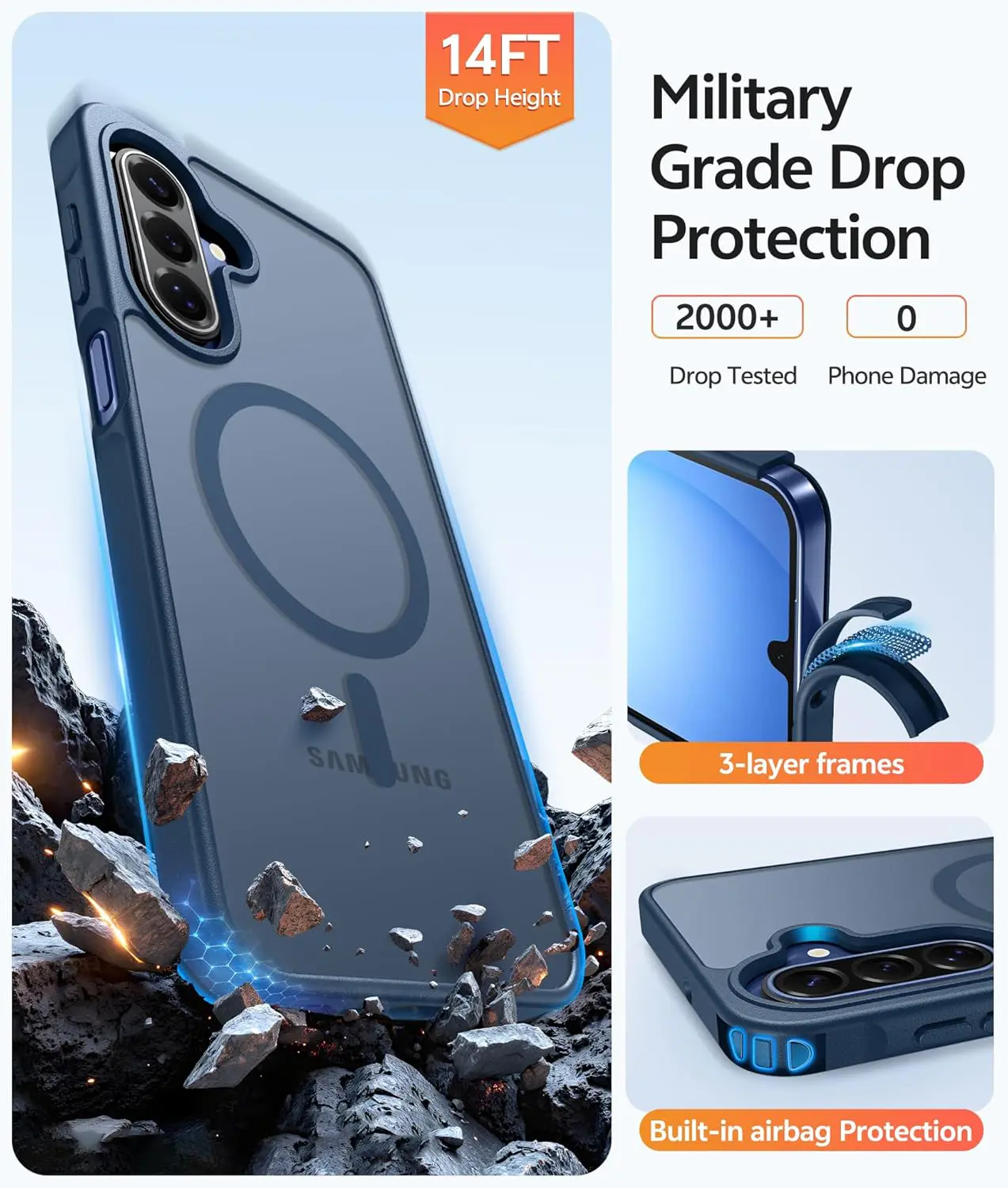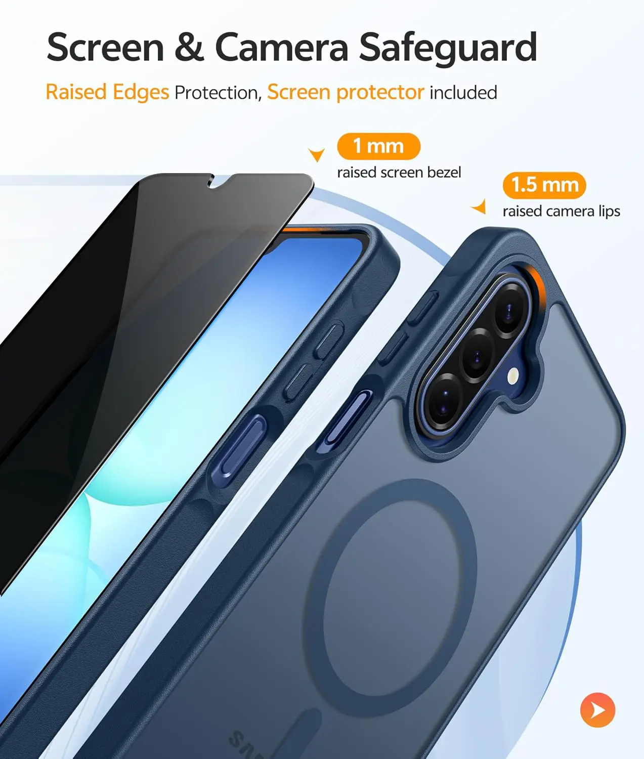 Magnetic for Samsung Galaxy A17/A16 5G Case with Privacy Screen Protector, Compatible with MagSafe, Translucent Matte Anti-Scratched Slim Case for Samsung A17/A16 5G ,Blue