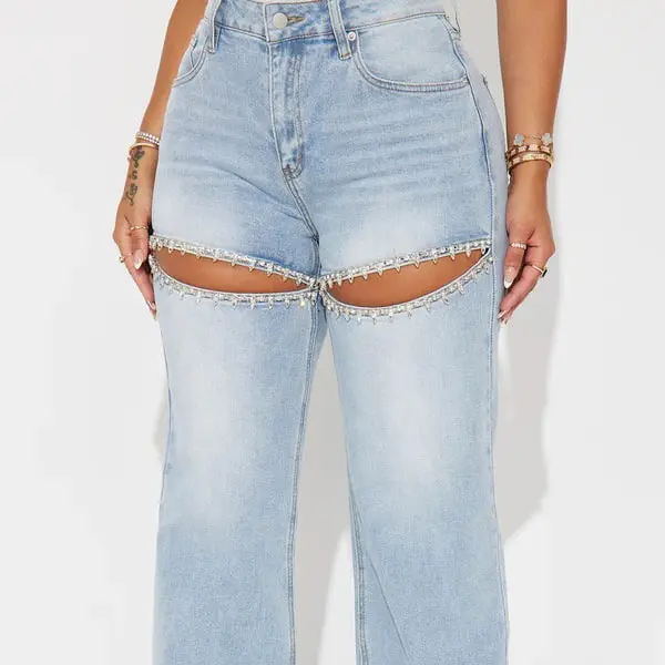 Ribbon Lace Up Low Rise Straight Leg Jeans