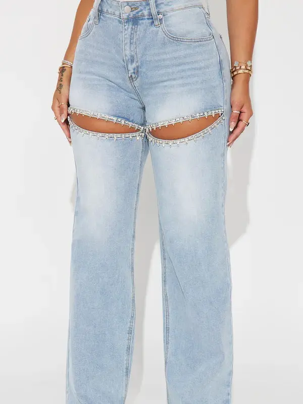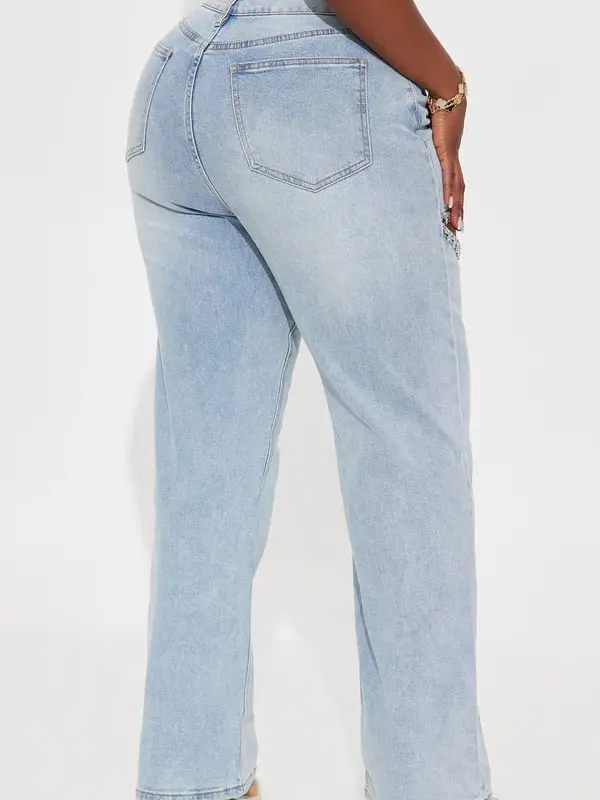 You Belong With Me Stretch Embellished Straight Leg Jeans - Light Wash