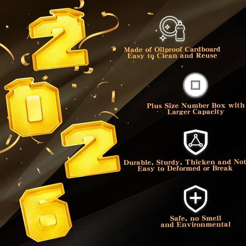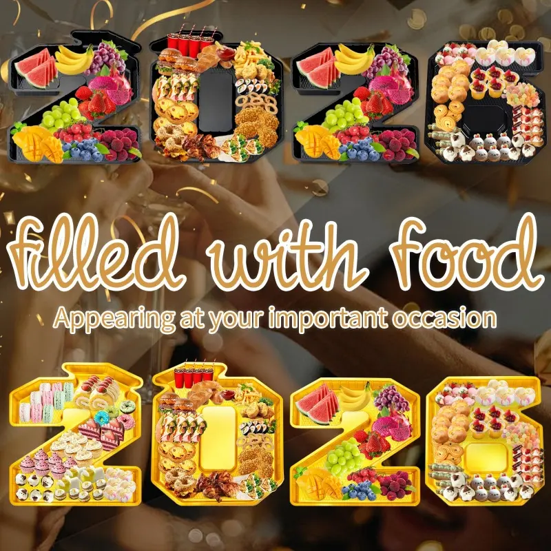 These innovative fillable number trays are ideal for serving snacks, candies, cookies, chocolates, fruits, nuts, charcuterie, and small appetizers, allowing you to create eye-catching dessert displays while enhancing your party theme. The 2026 number design brings a strong festive commemorative feel, making these trays perfect for table centerpieces, dessert table decor, photo booth backdrops, and party entrance decorations.
