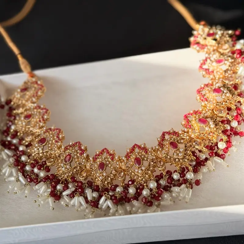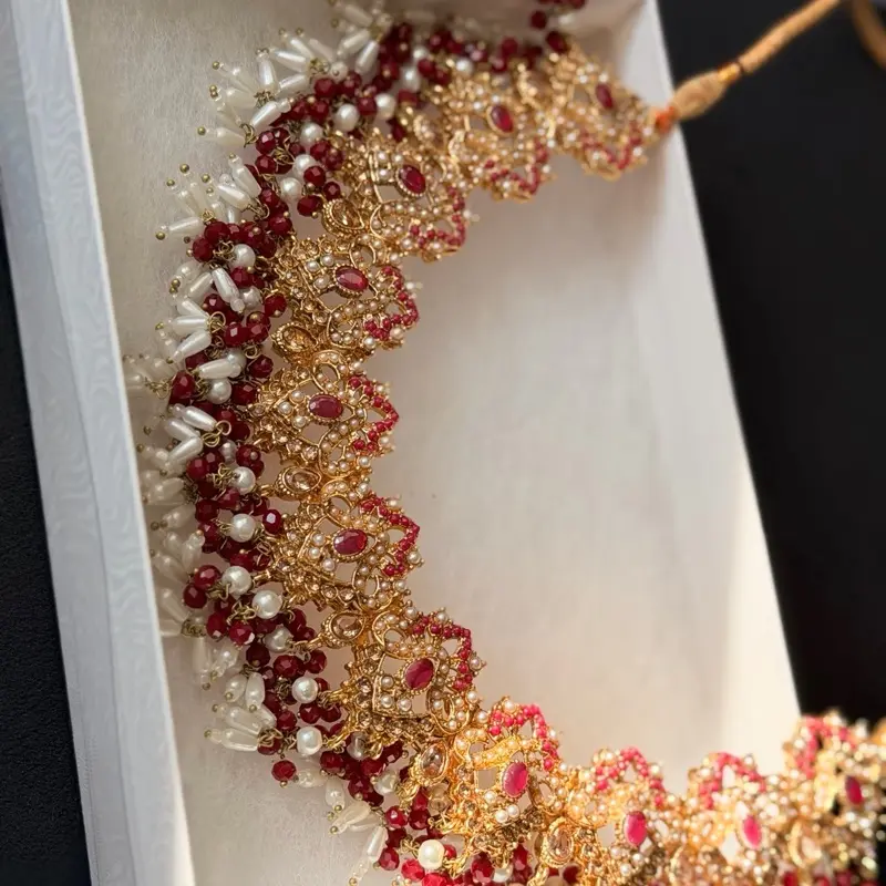 • Intricate kundan-style centerpiece with colorful stones
