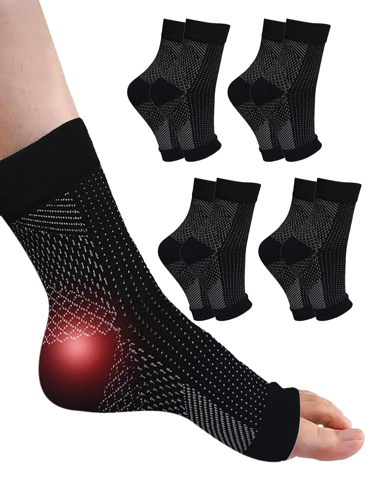 Open Toe Compression Ankle Socks with Arch Support, Breathable Stretch Design for All-Day Comfort, Ideal for Plantar Fasciitis Relief, Walking, Running, Standing Work and Daily Casual Wear