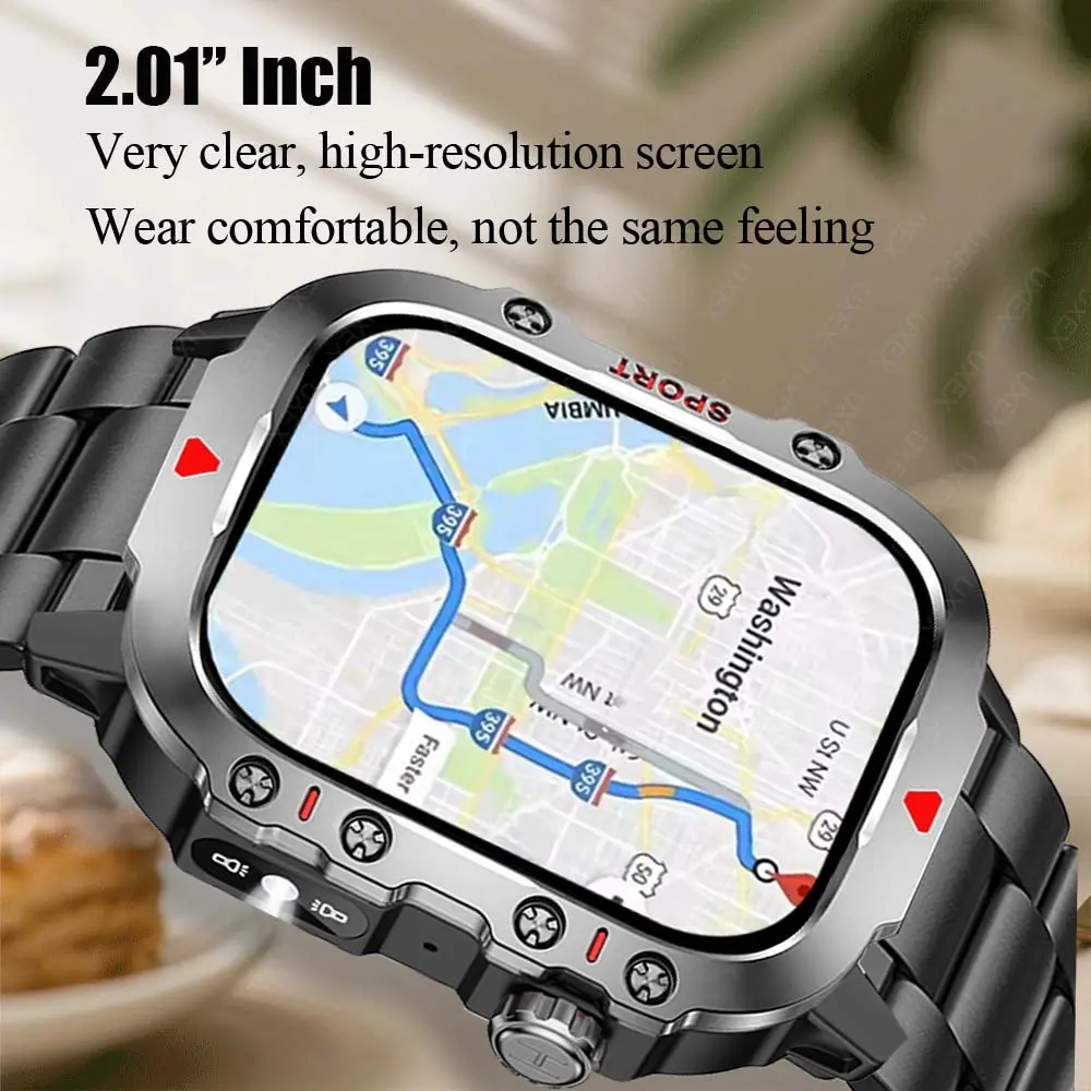 5. Multifunctional Men Business Smartwatch Flashlight 2.01 Inch HD Screen Fashionable Digital Watches Multiple Sports Modes Wireless Call Health Tracker Smart Watch Men