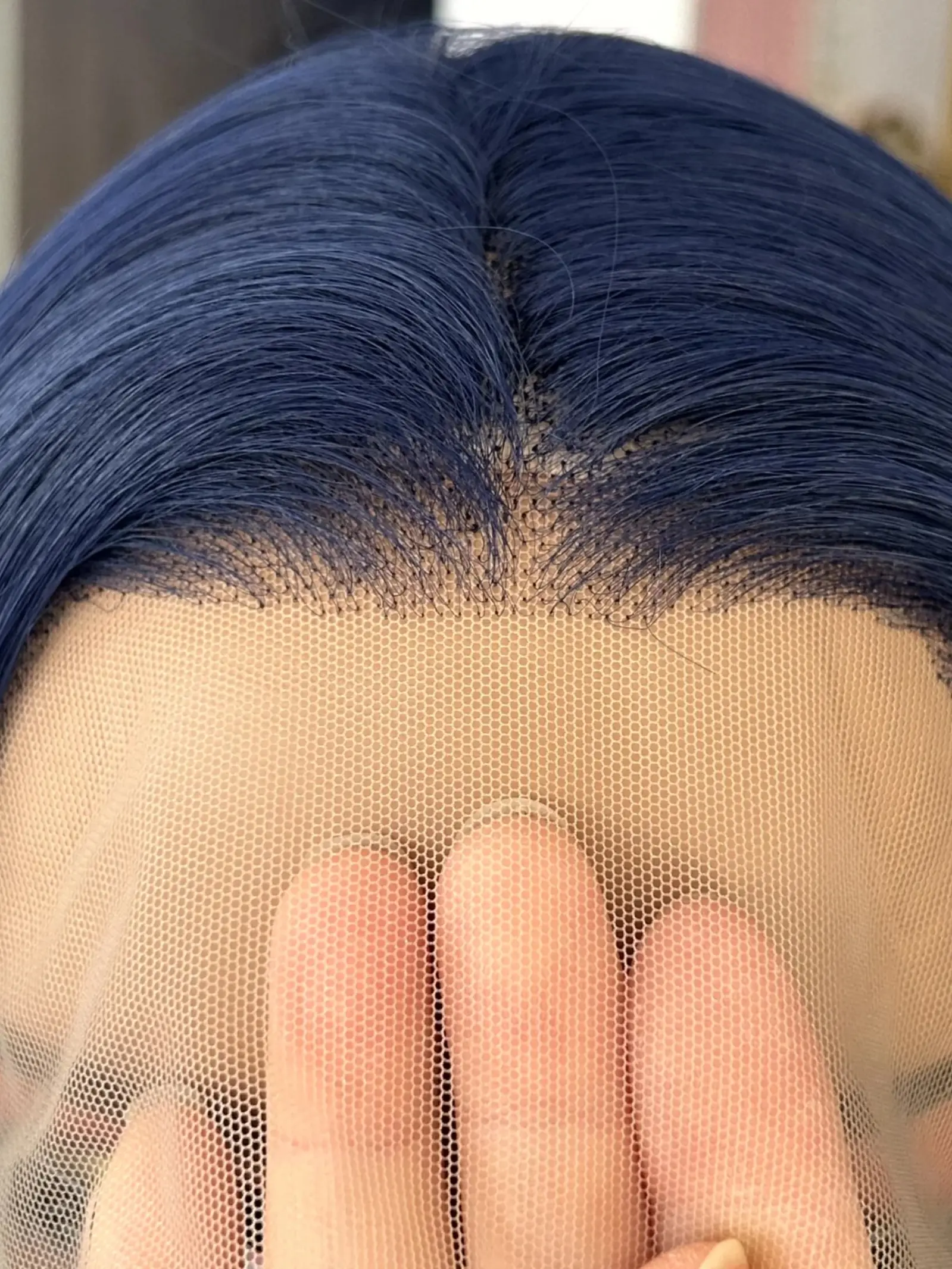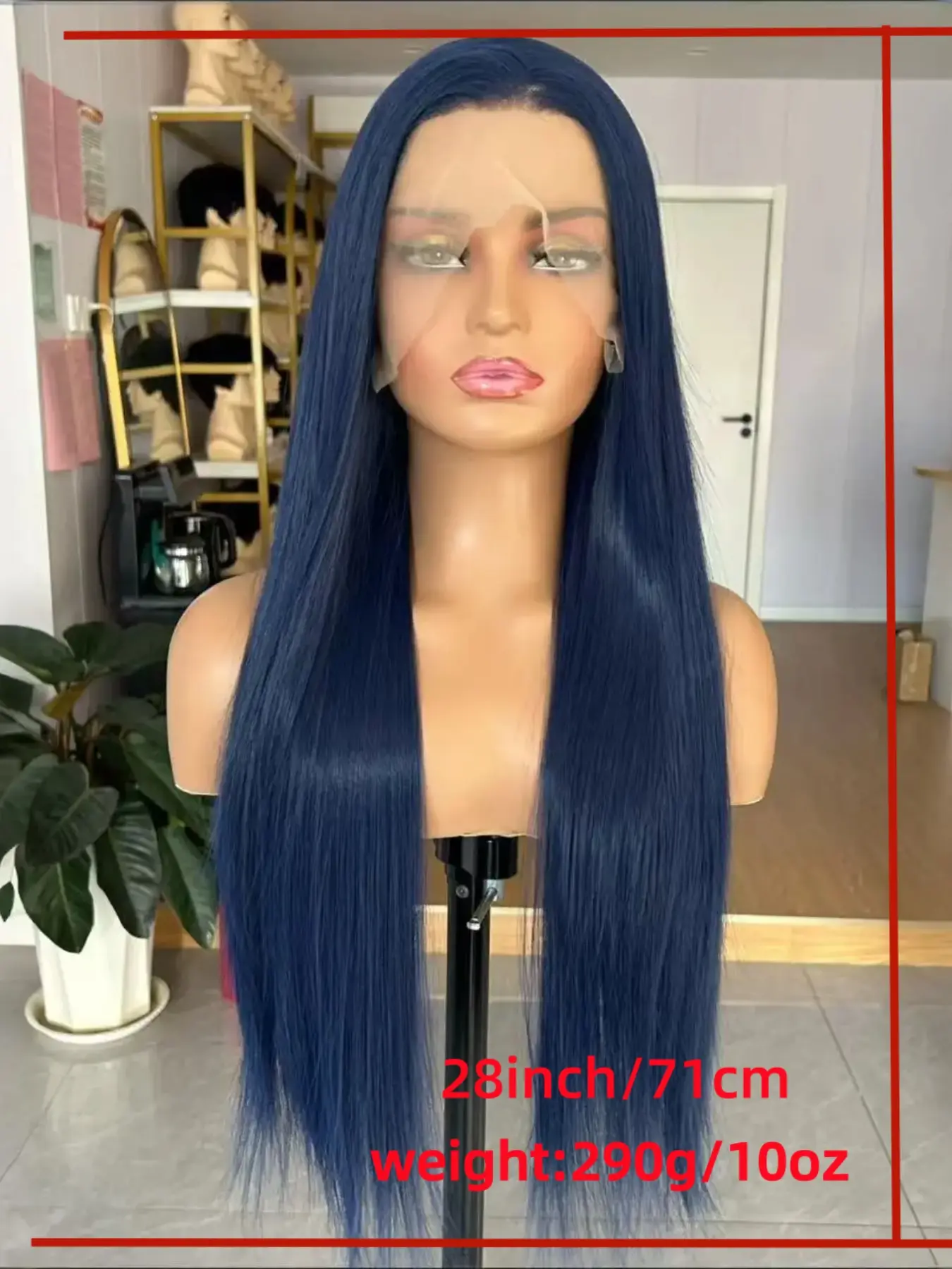 28-Inch Deep Blue Straight Wig for Women, Soft Lace Front, 180% Density, Pre-Plucked, No Glue, Heat Resistant, Daily Use