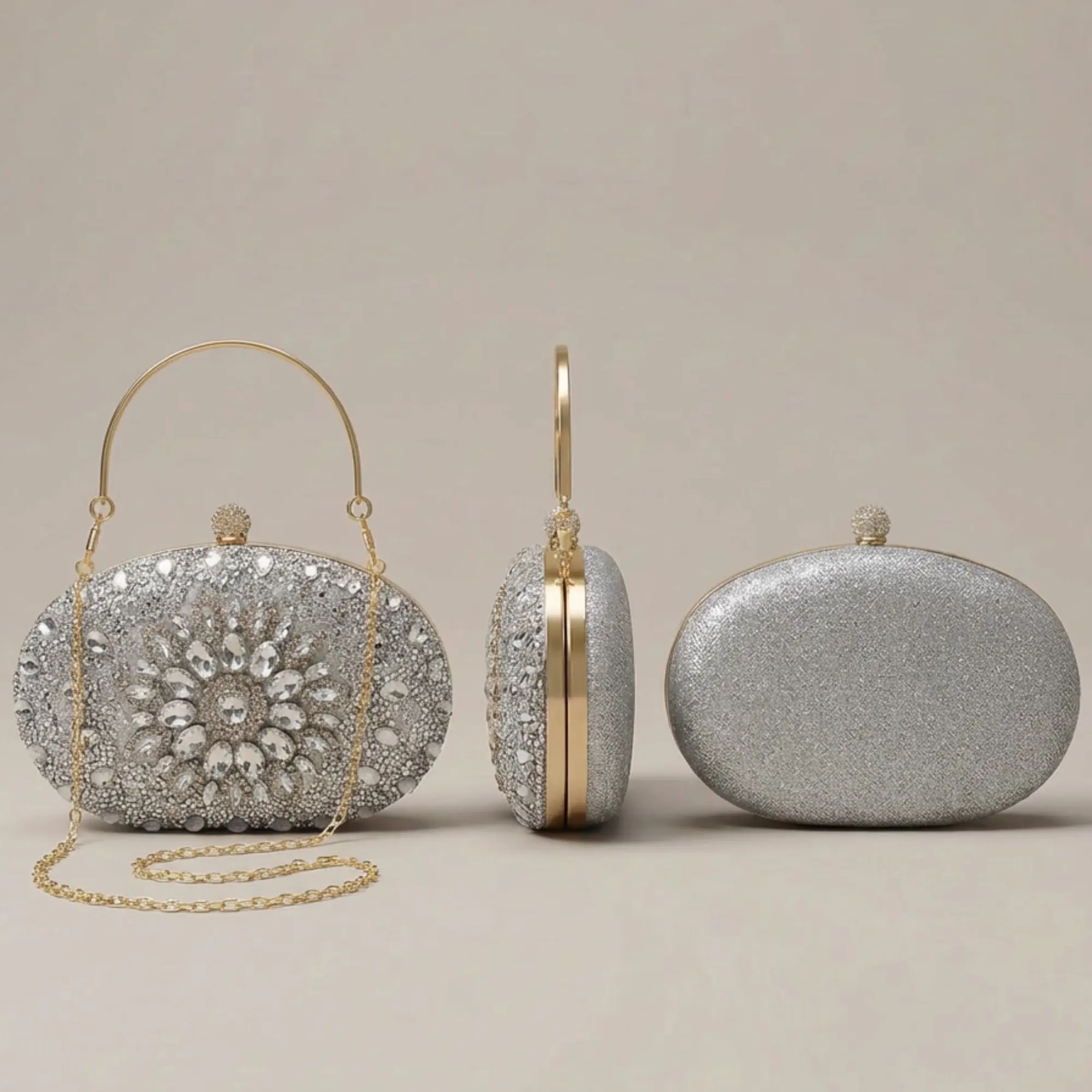 ·Silver Rhinestone Bag (Evening Glam) A timeless sparkle piece made for weddings, dinners, parties, and special nights. The silver shine adds instant luxury to any outfit.