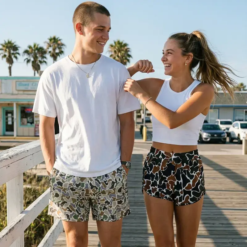 Unisex Camo Shorts for Men and Women, Hawaiian Summer Athletic Casual Shorts, Matching Couple Outfit, Great Gift for Friends