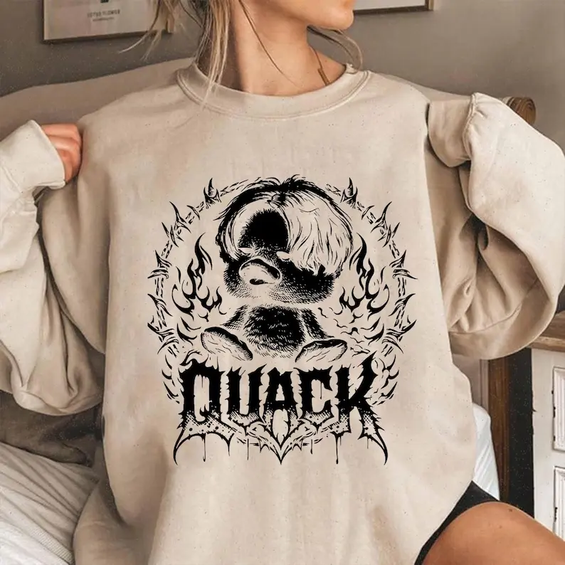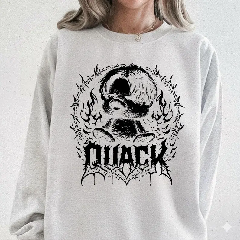 Funny Duck Metal Concert T-Shirt/Sweatshirt, Heavy Metal Duck Shirt, Rock Band Parody Duck T-Shirt, Funny Animal Graphic Tee, Unisex Metal Music Shirt