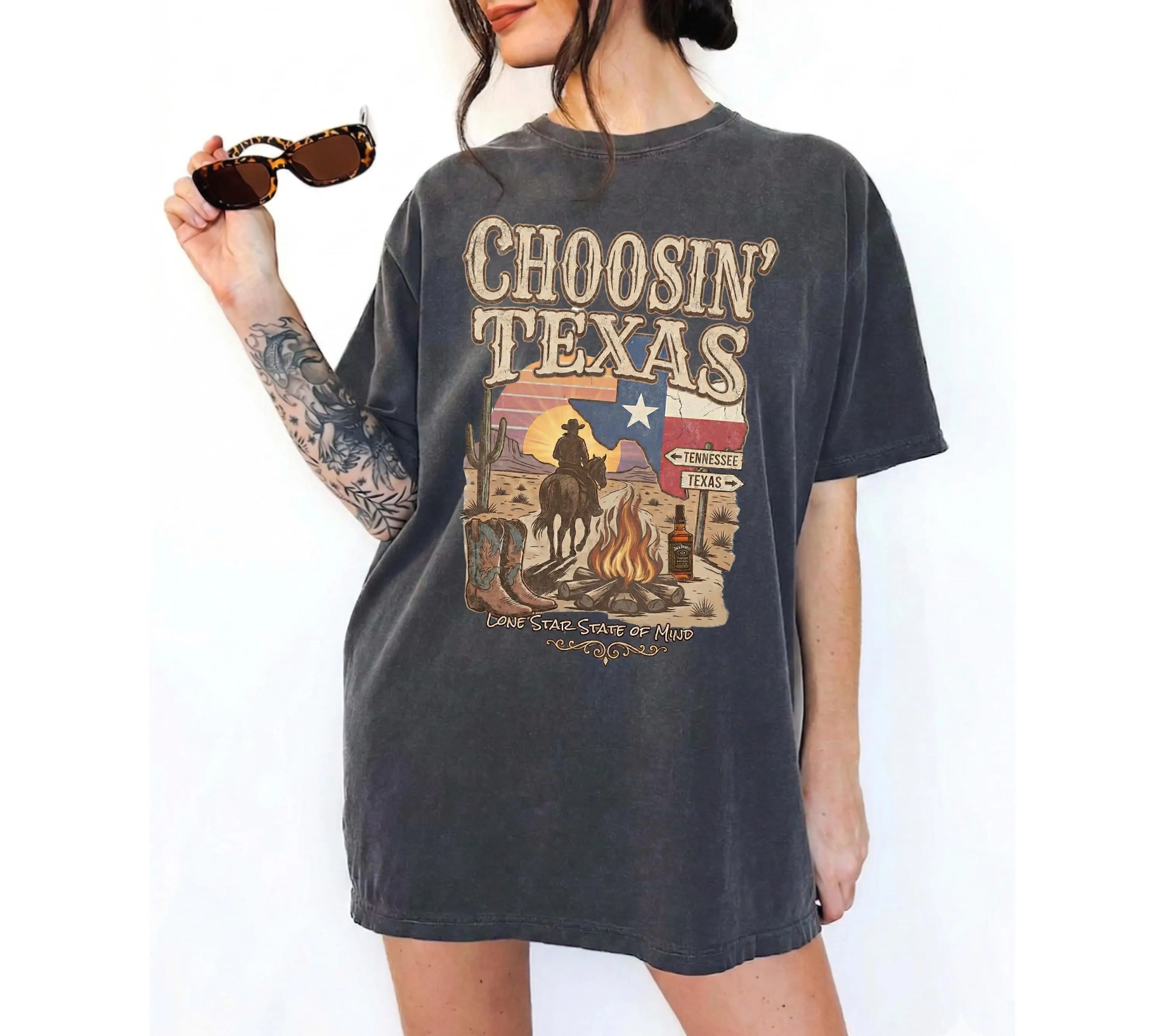 Comfort Colors Choosin' Texas Comfort Colors T-Shirt, Vintage Country Music Merch, Retro Western Cowboy Shirt