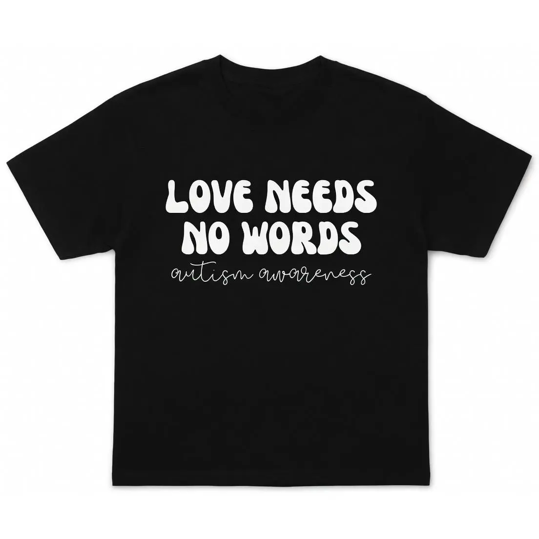 5. Love Needs No Words Shirt Autism Awareness Unisex T-Shirt Comfy Ultra-Soft Fabric Autism Mom Gift Support Graphic Tee