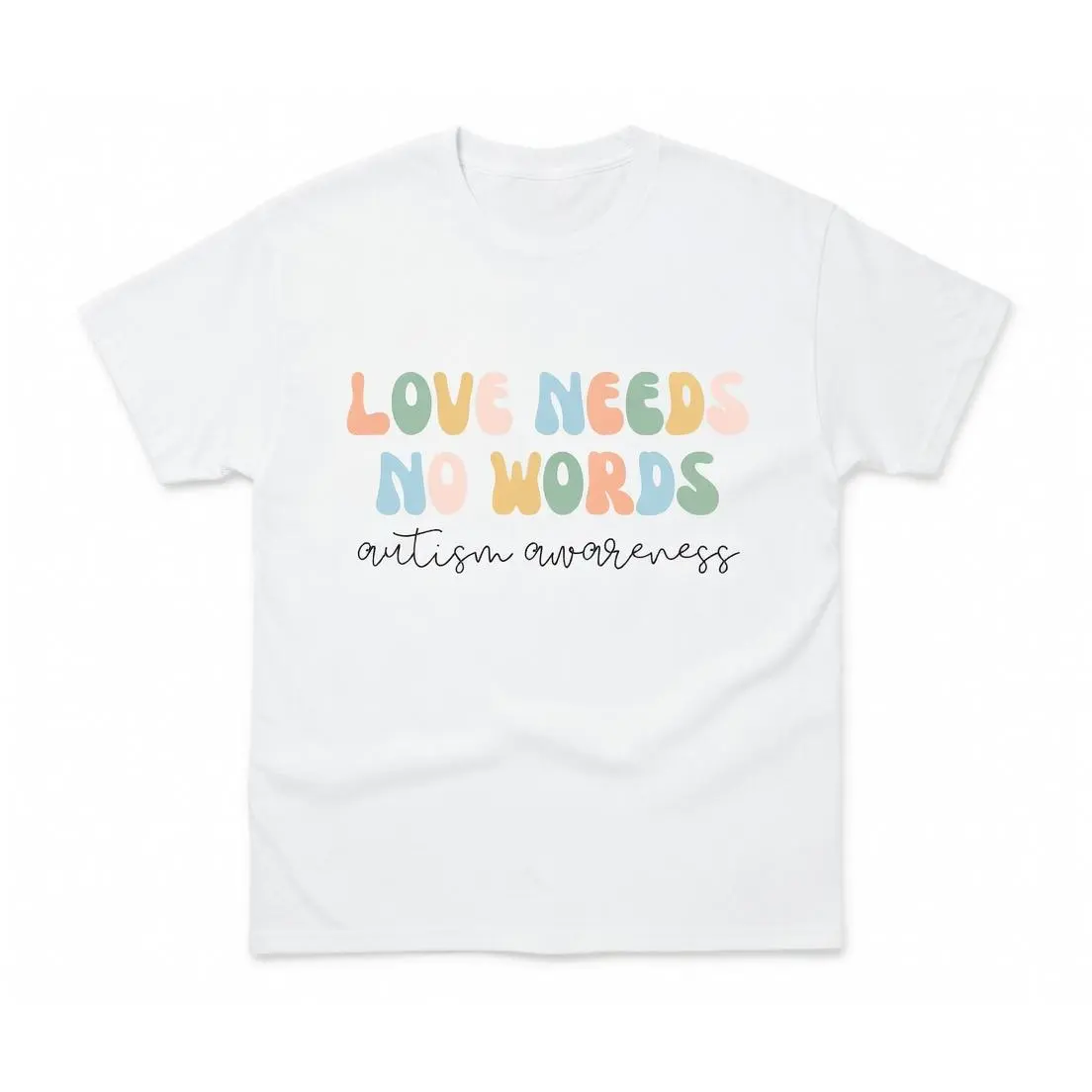 Love Needs No Words Shirt Autism Awareness Unisex T-Shirt Comfy Ultra-Soft Fabric Autism Mom Gift Support Graphic Tee