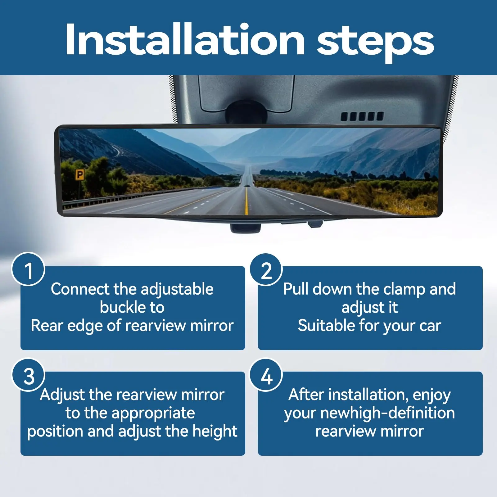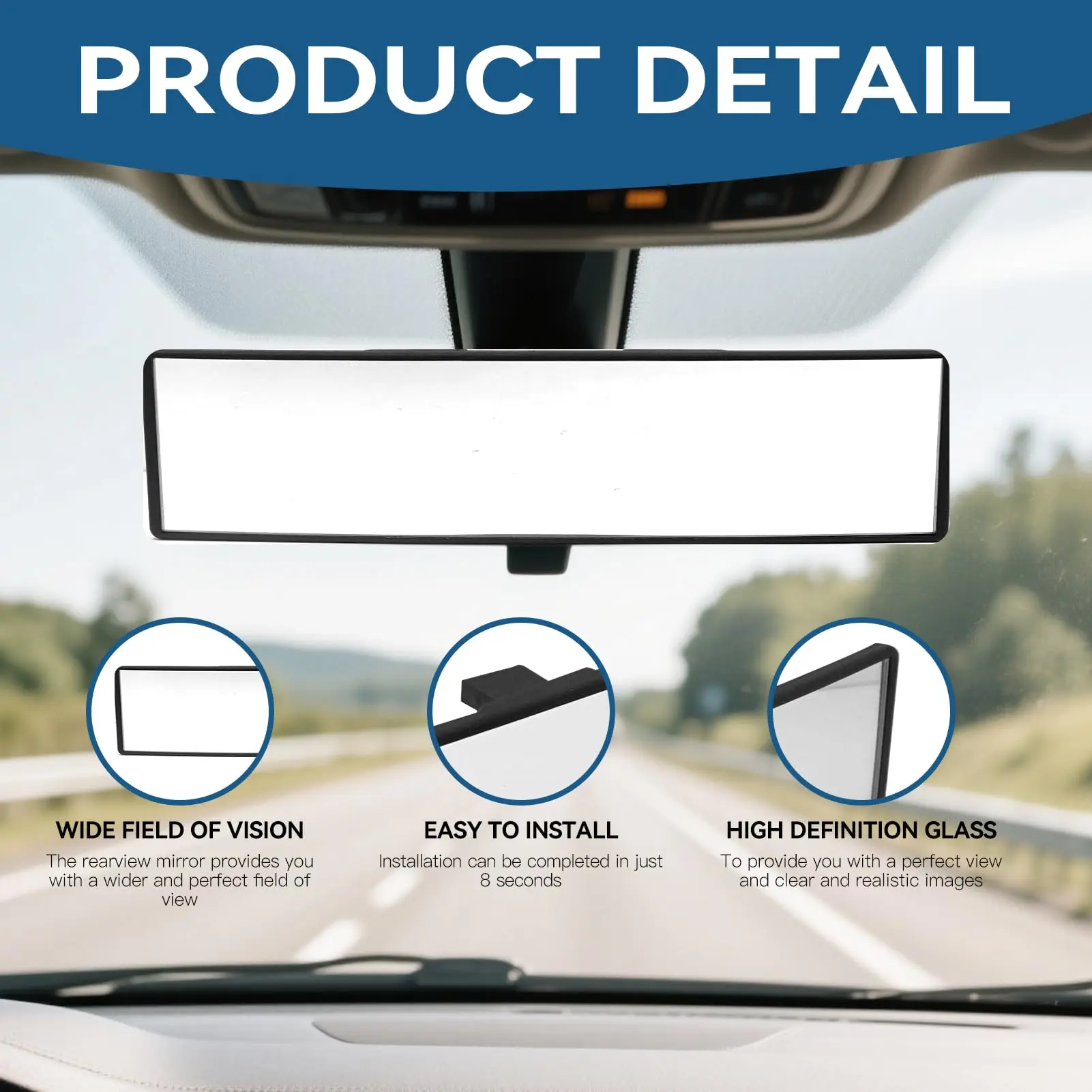 Enhance your driving safety with this wide-angle rearview mirror. Perfect for cars and SUVs, it eliminates blind spots, ensuring a safer driving experience. This accessory is designed to provide a comprehensive view of your surroundings. Install it easily and enjoy the peace of mind it offers.