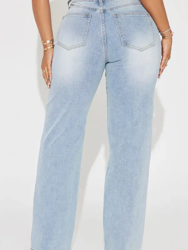 90's Nostalgia Straight Leg Jeans - Light Blue Wash