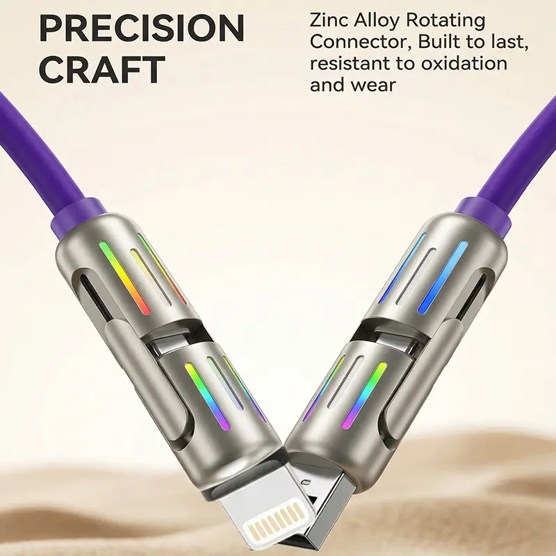 Durable Liquid Silicone Cable Design Crafted from premium liquid silicone, this cable is soft to the touch yet extremely durable. It withstands over 20,000 bends and resists tangling, ensuring long-lasting use in both home and travel scenarios