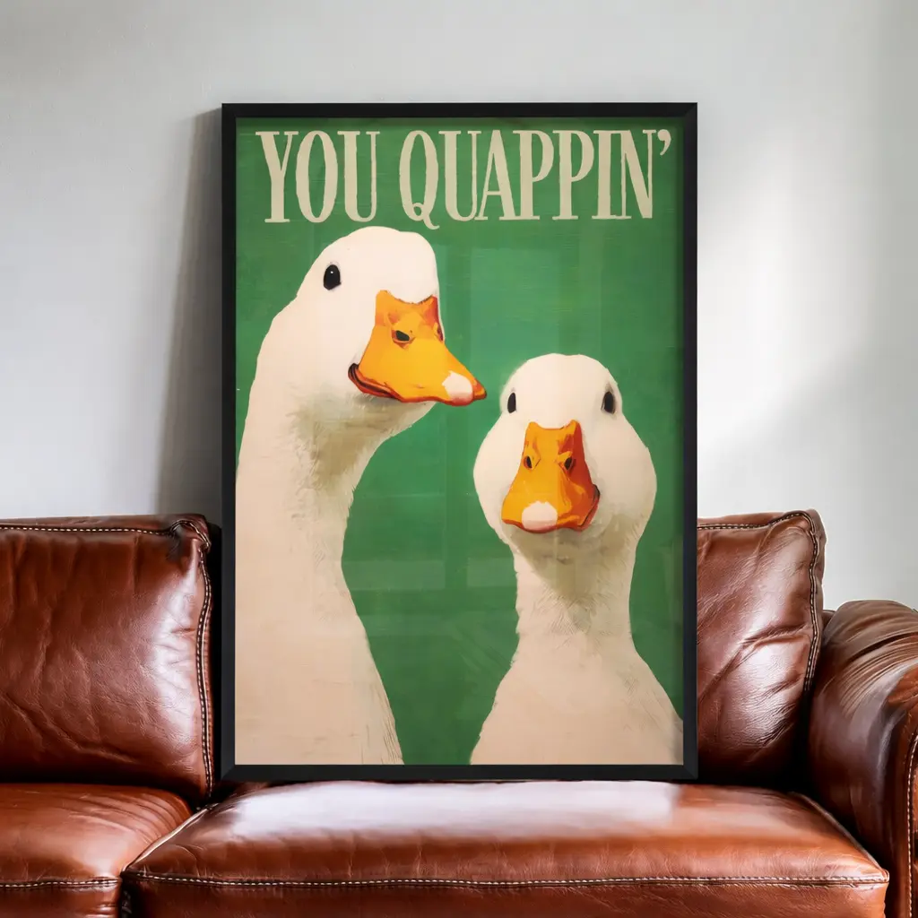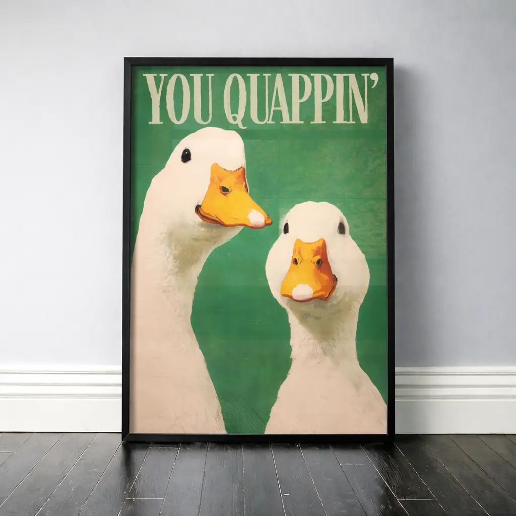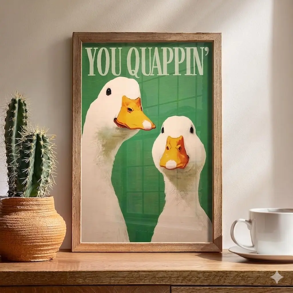 You Quappin’ Duck Restroom Wall Art, Funny Vintage Farmhouse Duck Bathroom Art, Silly Goose Toilet Humor Wall Art, Western Powder Room Decor