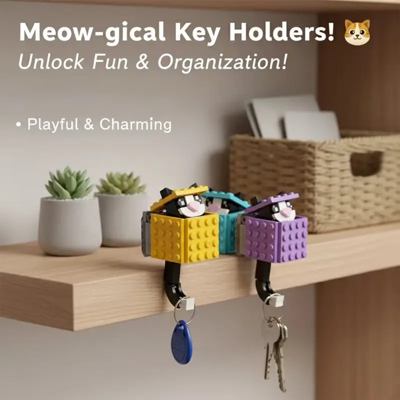 This original MOC brick cat key hook perfectly combines cuteness and practicality. Available in 3 charming color options, it includes 73 brick pieces, making it easy for beginners to assemble their exclusive storage piece.