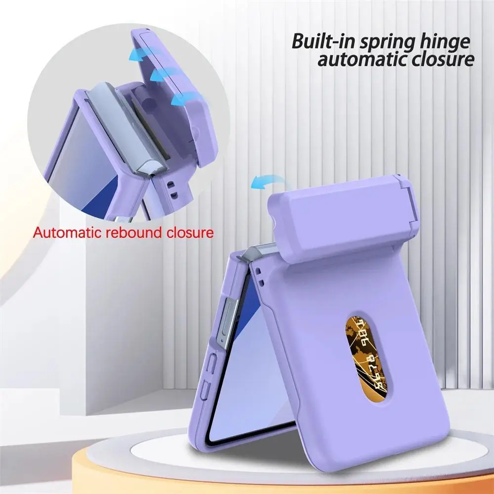 Hard Cover For Samsung Galaxy Z Flip 7 fe 6 5 Flip7 Flip6 Flip5 5G Phone Case with Card Kickstand Hinge Protection
