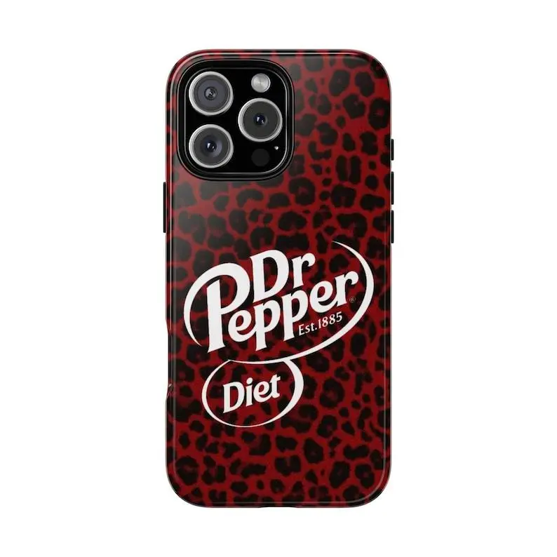 DrPepper Phone Case, Funny Retro Soda Aesthetic Cover, Dual Layer Shockproof Tough Case, Cute Red Bow & Leopard Print Holiday Gift, Cover For iphone 17 16 15 14 13 12 11  & Samsung Galaxy S25 S24 S23 S22 S21