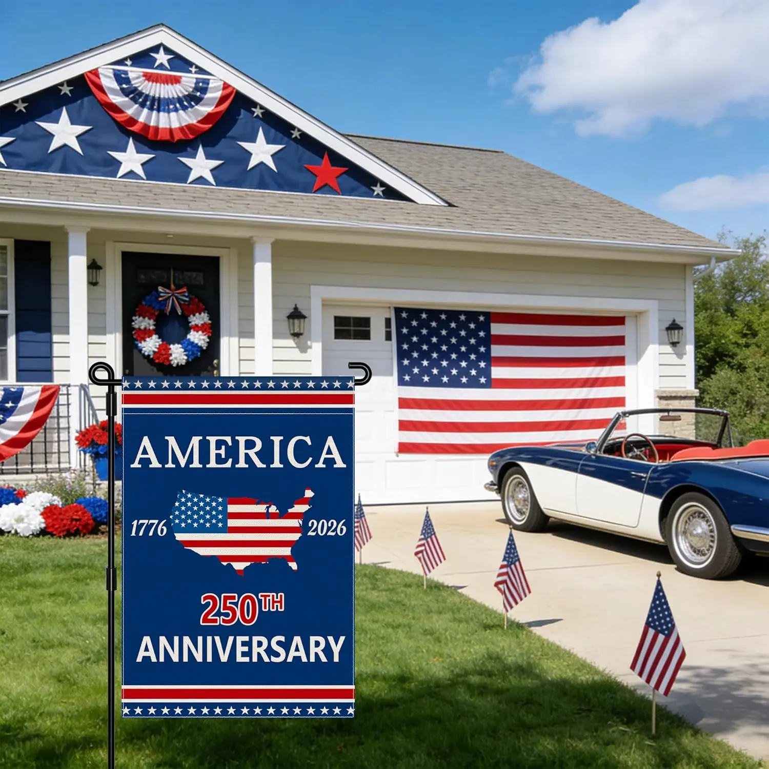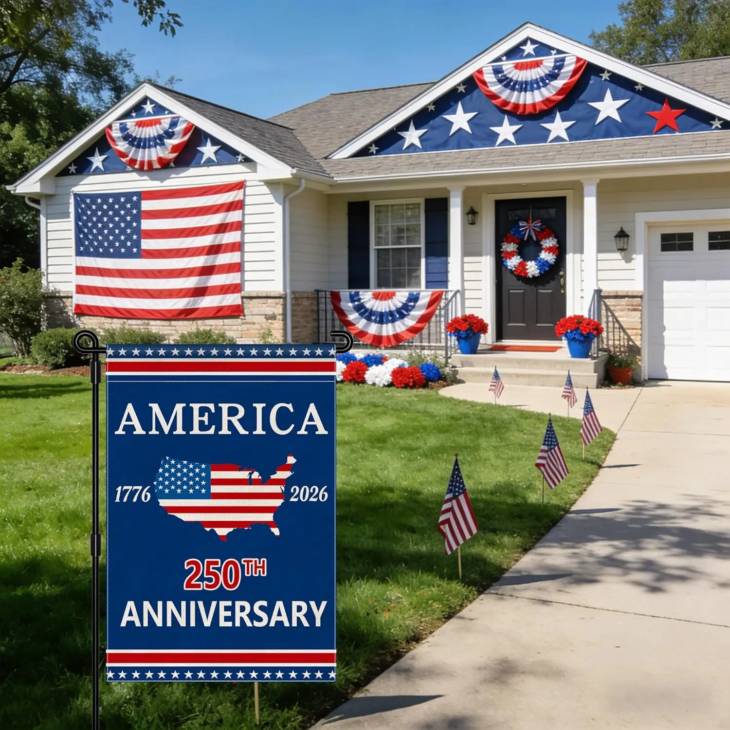 ·1 Pcs 12 x 18 Inch 250 anniversary usa garden flag (Not Include Garden Flag Holder Stand)