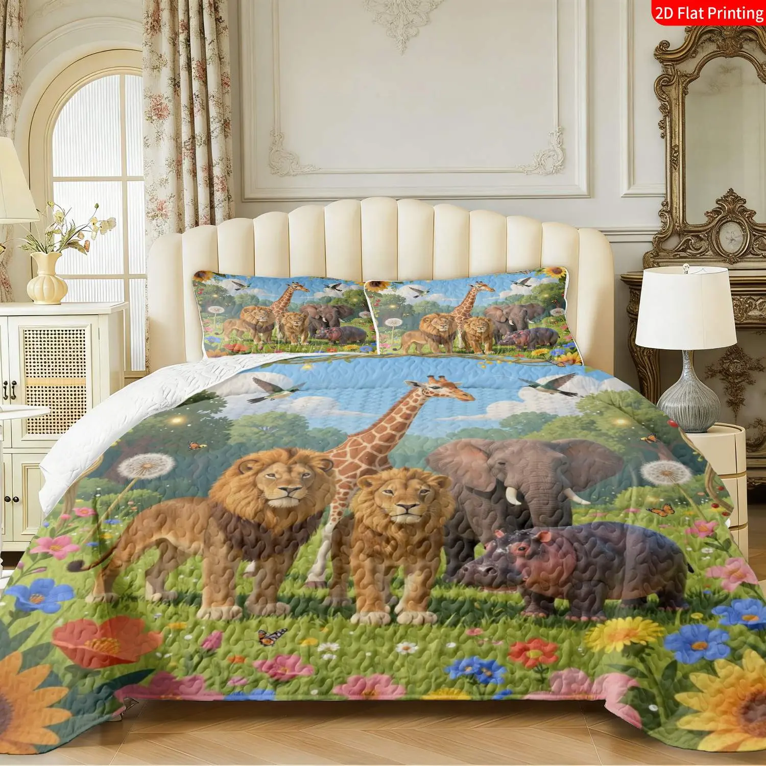 3 pcs, 2D Flat Print Jungle Animal Theme Bedspread Set, Soft and Comfortable, Multiple Sizes Available, Suitable for Gifting and Daily Use, Ideal for Creating a Cozy Home Atmosphere(1 bedspread , 2 pillowcases)