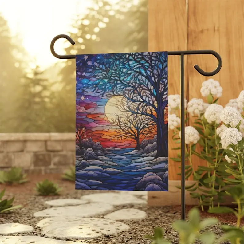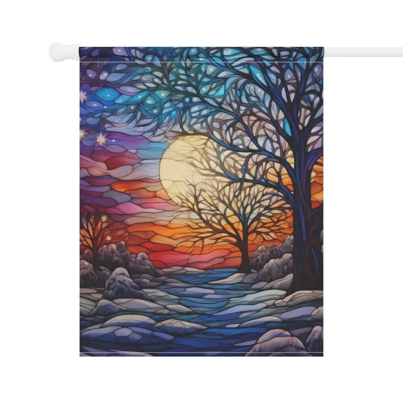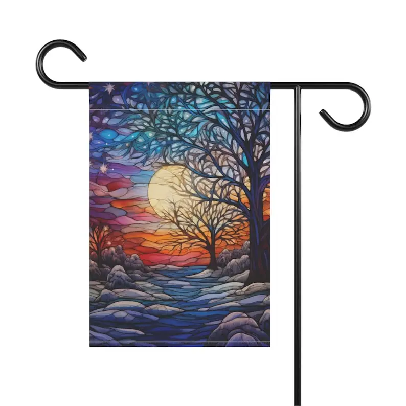 Winter Yard Flag, Christmas Garden Decor, Mosaic House flag, Stained Glass Design, Stained Glass Winter Christmas Garden Flag & House Flag