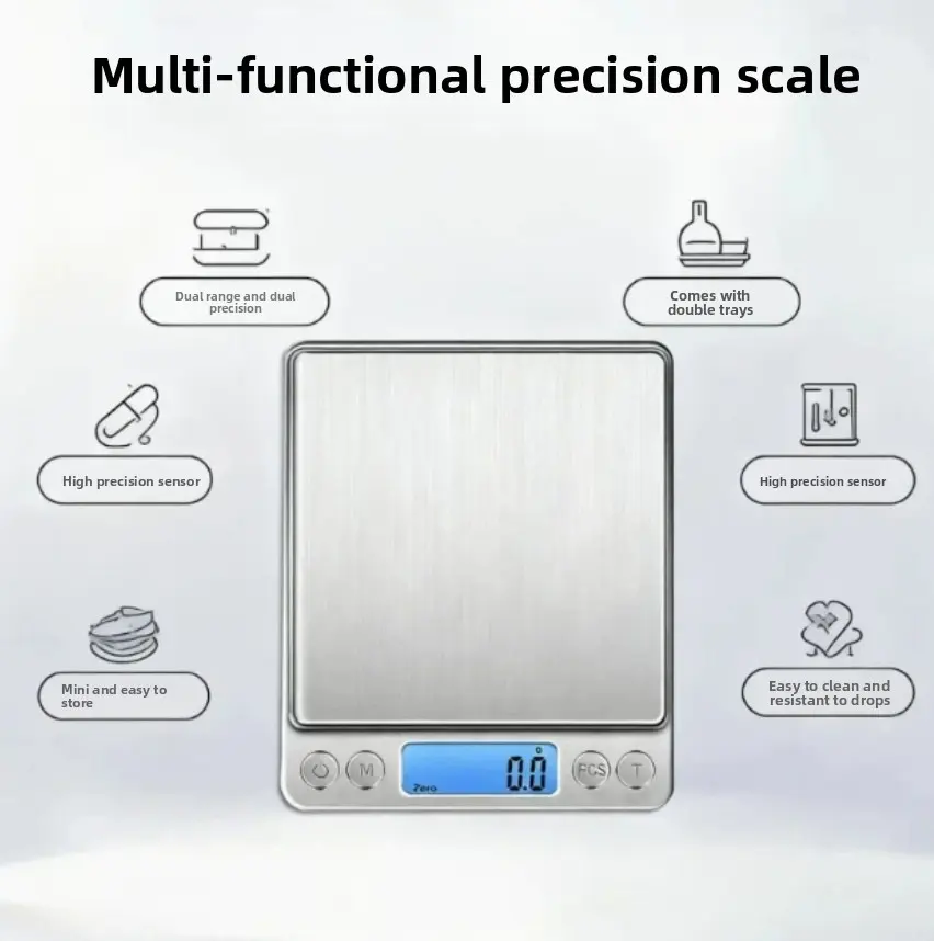 This electronic scale is ideal for your kitchen. It offers high-precision measurements, ensuring accuracy in your recipes. Whether you're baking or preparing meals, this scale provides precise gram measurements. It's compact and fits easily on your countertop. Ideal for small spaces, it's a must-have for any kitchen.