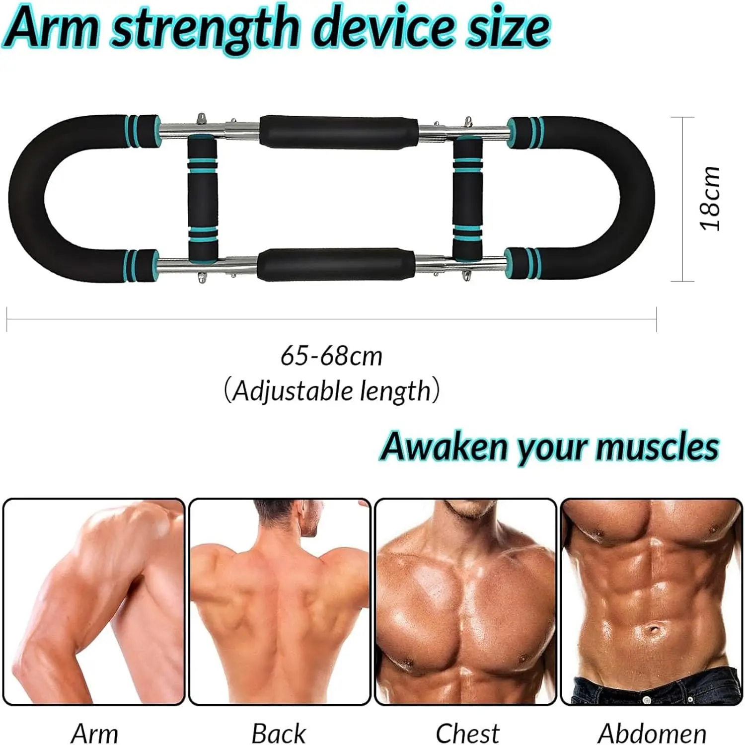 1.[UNIQUE FULL UPPER BODY FITNESS EQUIPMENT]Arm trainer as your personal workout trainer and helping you get a killer chest workout,Through the training guide chart.Strength bar work multiple muscle groups with precision, including chest, arms, biceps, abs, shoulders and back, and thigh muscles.