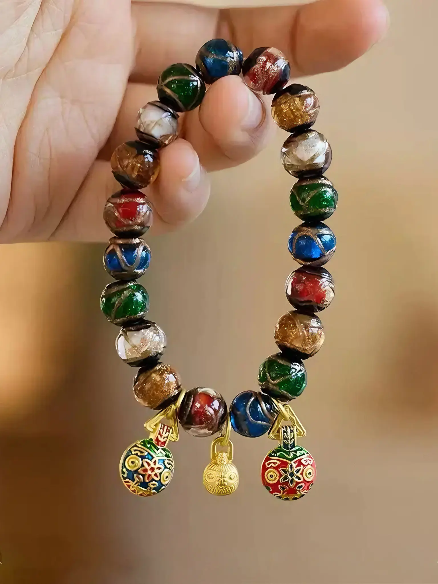 This is one of the most distinctive Five Elements bracelets in Chinese culture, featuring colorful beads representing the five elements and adorned with a “Wealth Beast” enamel pendant and a gold bell. Its key highlight lies in a blessing and empowerment bestowed by a sage, which infused it with powerful spiritual energy.