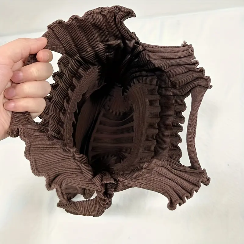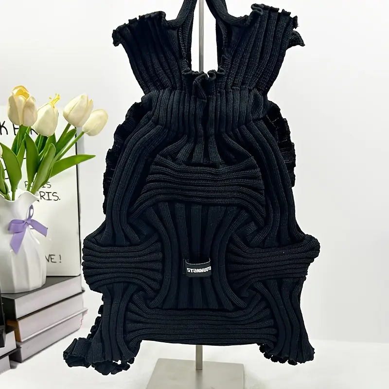 Fashionable new pleated texture knitted backpack with drawstring drawstring and elastic expansion, a versatile tool for casual travel/street fashion.It can be used for three purposes (back/lift/carry) and is a must-have for casual outings