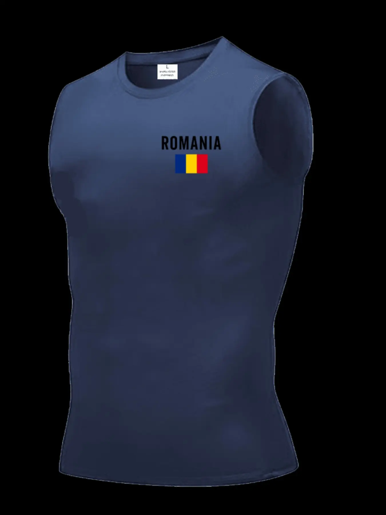 Men's Short Sleeve Sporty Top, Quick-Dry Breathable Fabric, Romania Pattern, Ideal for Gym, Running, Boxing, Outdoor Activities