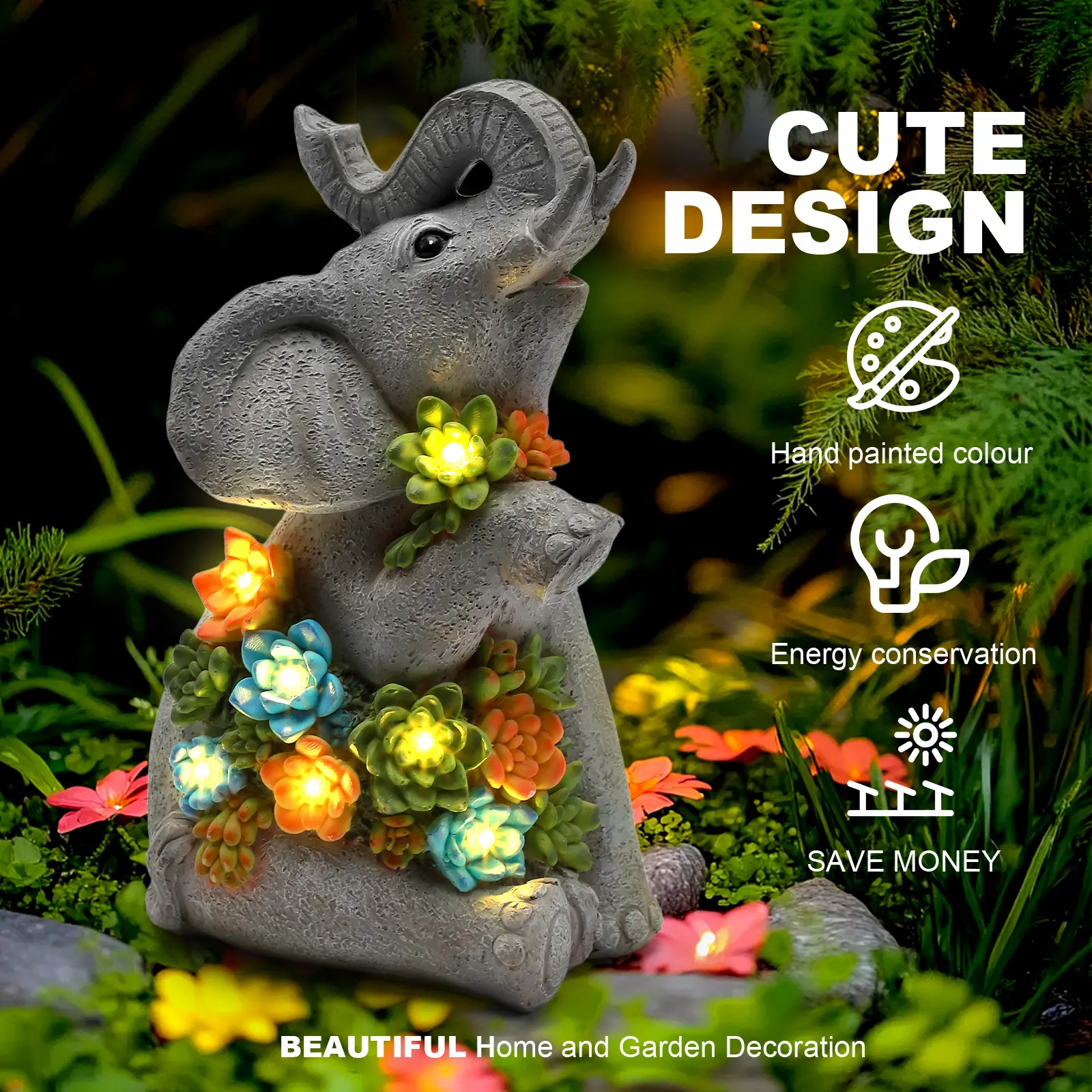 Solar Garden Statues,Outdoor Solar Elephant/Turtle/Dinosaur Statue Crafts,Suitable For Gardens, Courtyard Paths, Yards, Terraces,Mom,Mother's Day Gifts,Housewarming,Gardening Gift,Garden Accessories