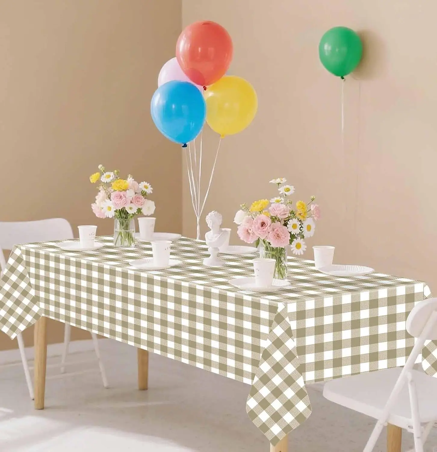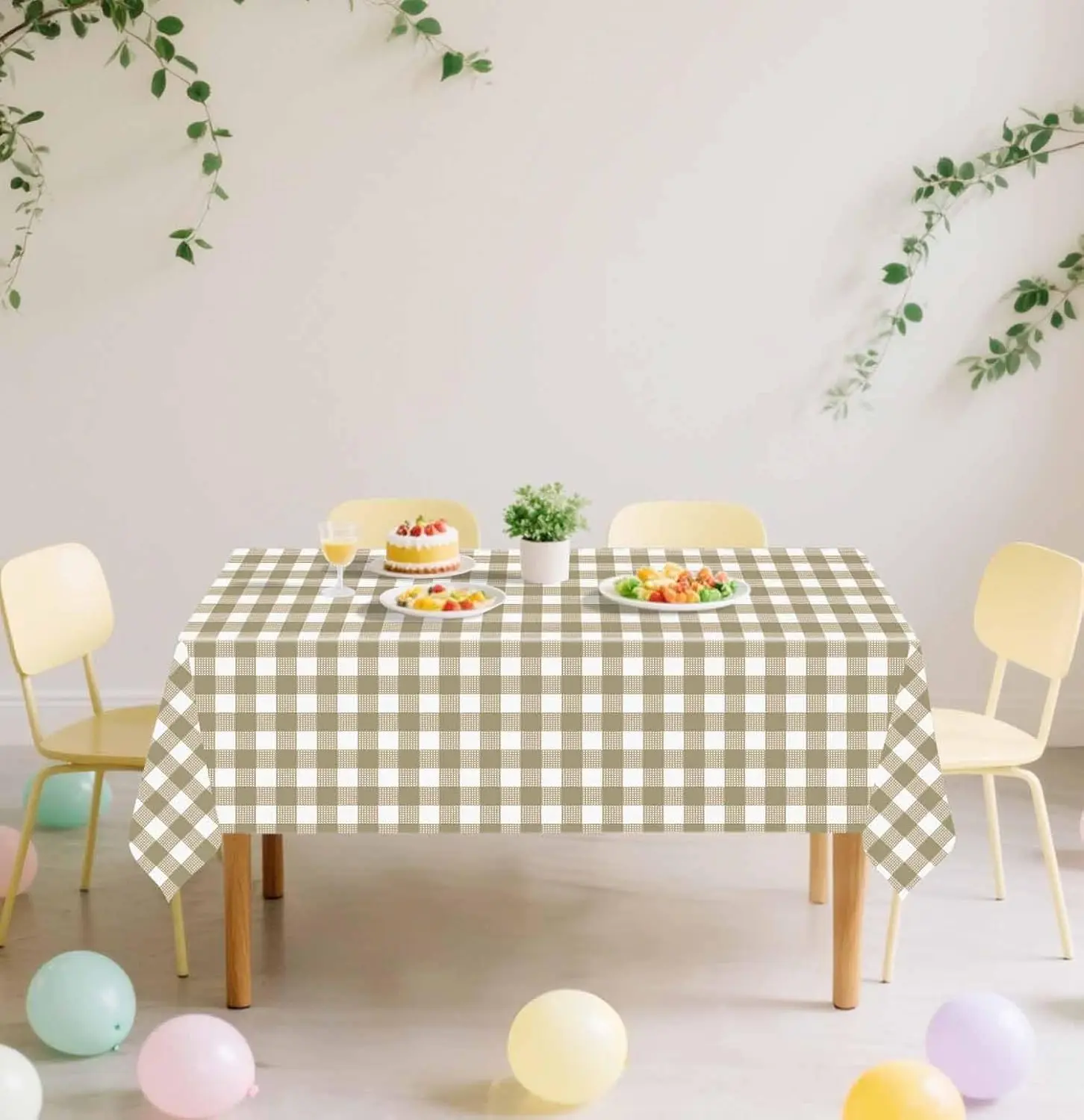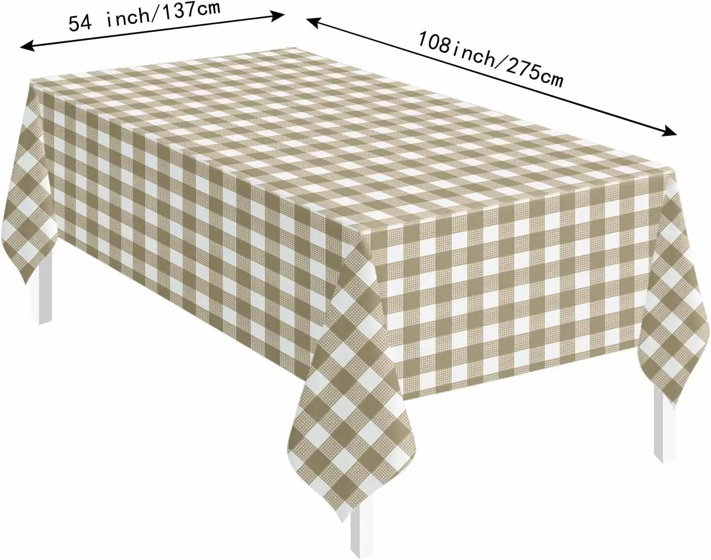 ·Brown gingham tablecloth: The rectangle tablecloth plastic measures 54 x 108 inch, suitable for 8 foot long table and could accommodate 8-10 people. Brown and white gingham tablecloth complements your dinnerware and enhances the ambience of the table
