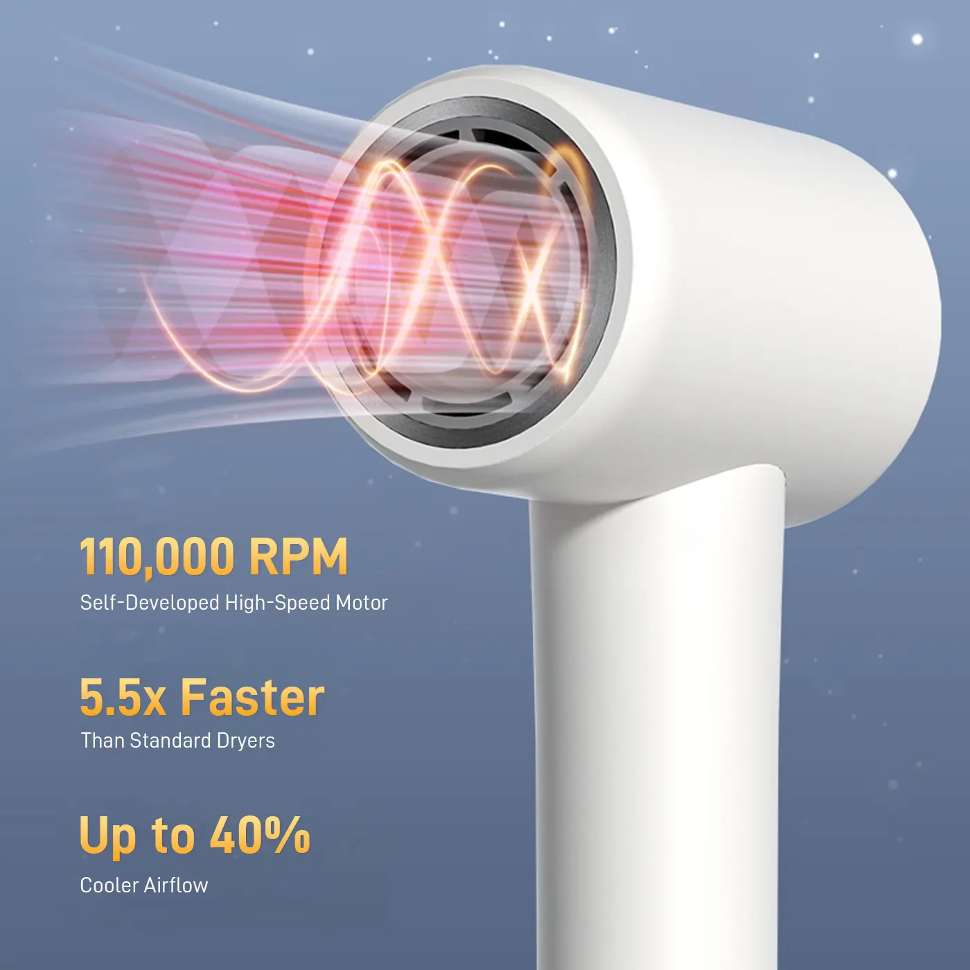 Built with a brushless high speed motor, the dryer delivers stable performance, strong airflow, and long-lasting durability for everyday use.
