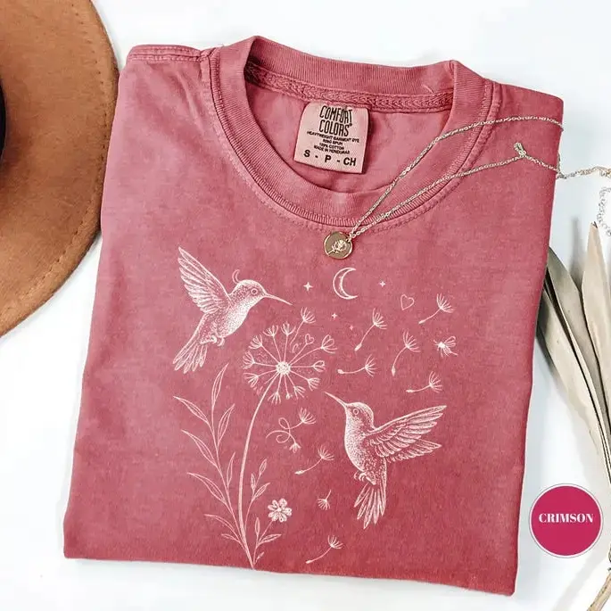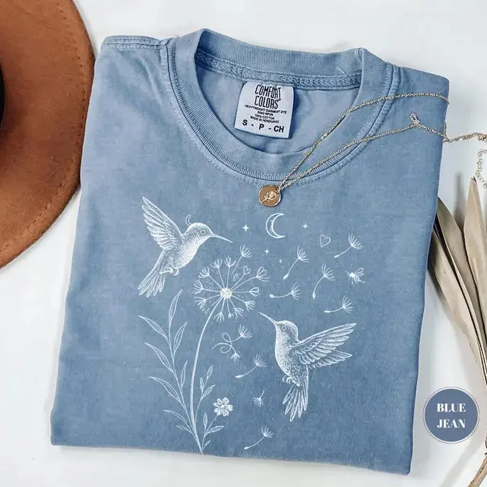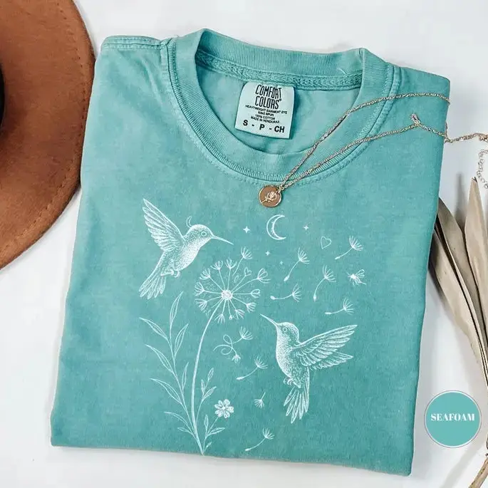 Comfort Colors Dandelion Hummingbird T-Shirt, Nature Lover Gift, Womens Clothing, Gardening Tee, Flower Shirt, Cute Wildflowers Aesthetic - TrendWear USA