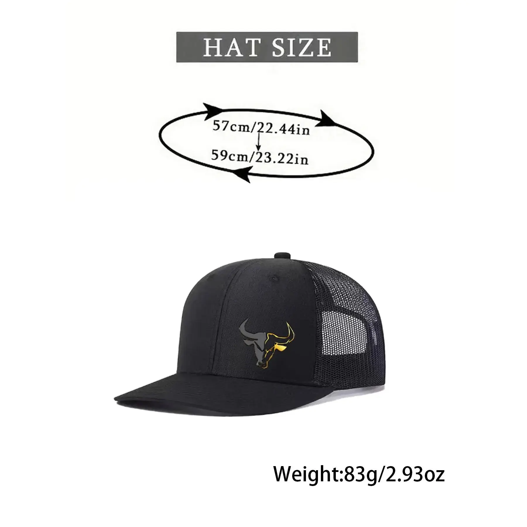Unisex Snapback Baseball Cap with Bull Head Design, Adjustable Trucker Style for Men & Women, Casual Fitted Mesh Hat for All Seasons