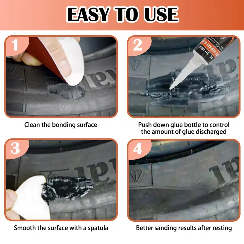 4PCS Tire Repair Glue | 50ML Strong Rubber Adhesive for Sidewall Crack Fix | Waterproof Sealant for Car, Motorcycle, Bike Tire Repair