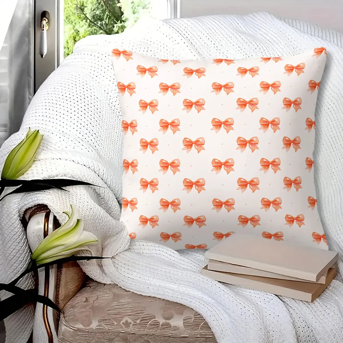 Kawaii Cute Bow Knot Throw Pillow Covers, Pastel Ribbon Decorative Sofa Pillows, Sweet Gift for Teen Girls and Women, with Pillow Insert