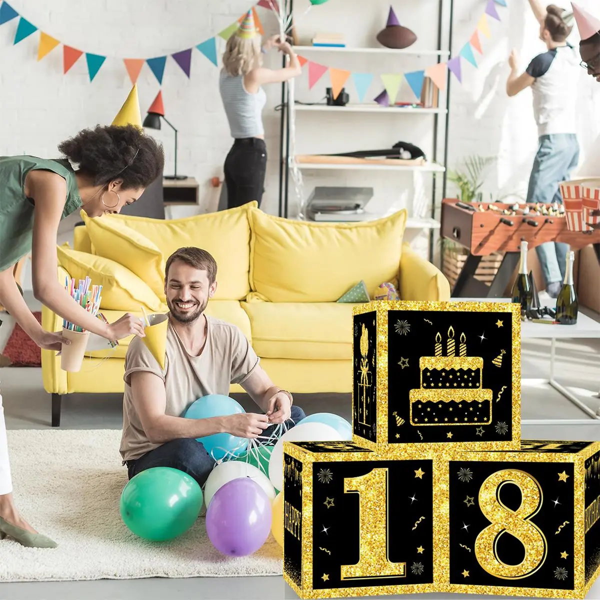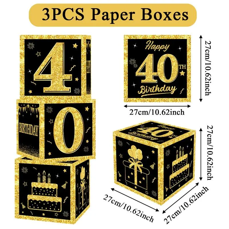 Happy Birthday Box Black Gold 18th 30th 40th 50th 60th Happy Birthday Decorations for Home Adults Party Decor Gift Supplies