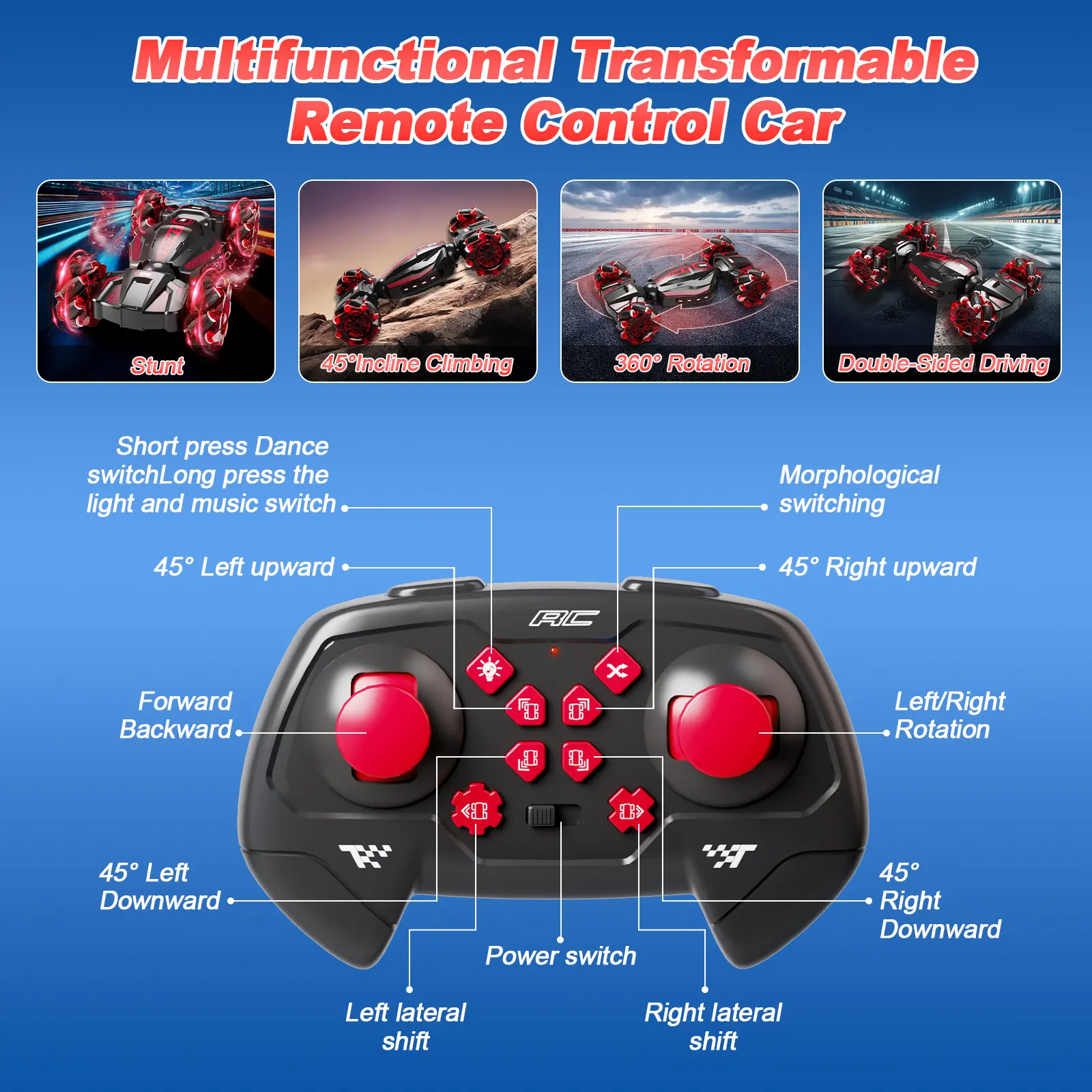 1:18 High Speed RC Car 2.4GHZ High-Torque 4WD All-Terrain Off-Road Racer with Premium Suspension ShockAbsorber Multi-Function Lighting 2-Speed Transmission Dual Lithium-ion Batteries Toy for Boys & Girls Ages 6+