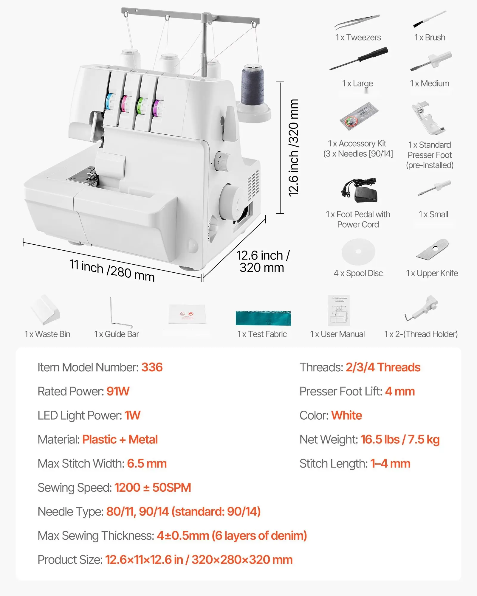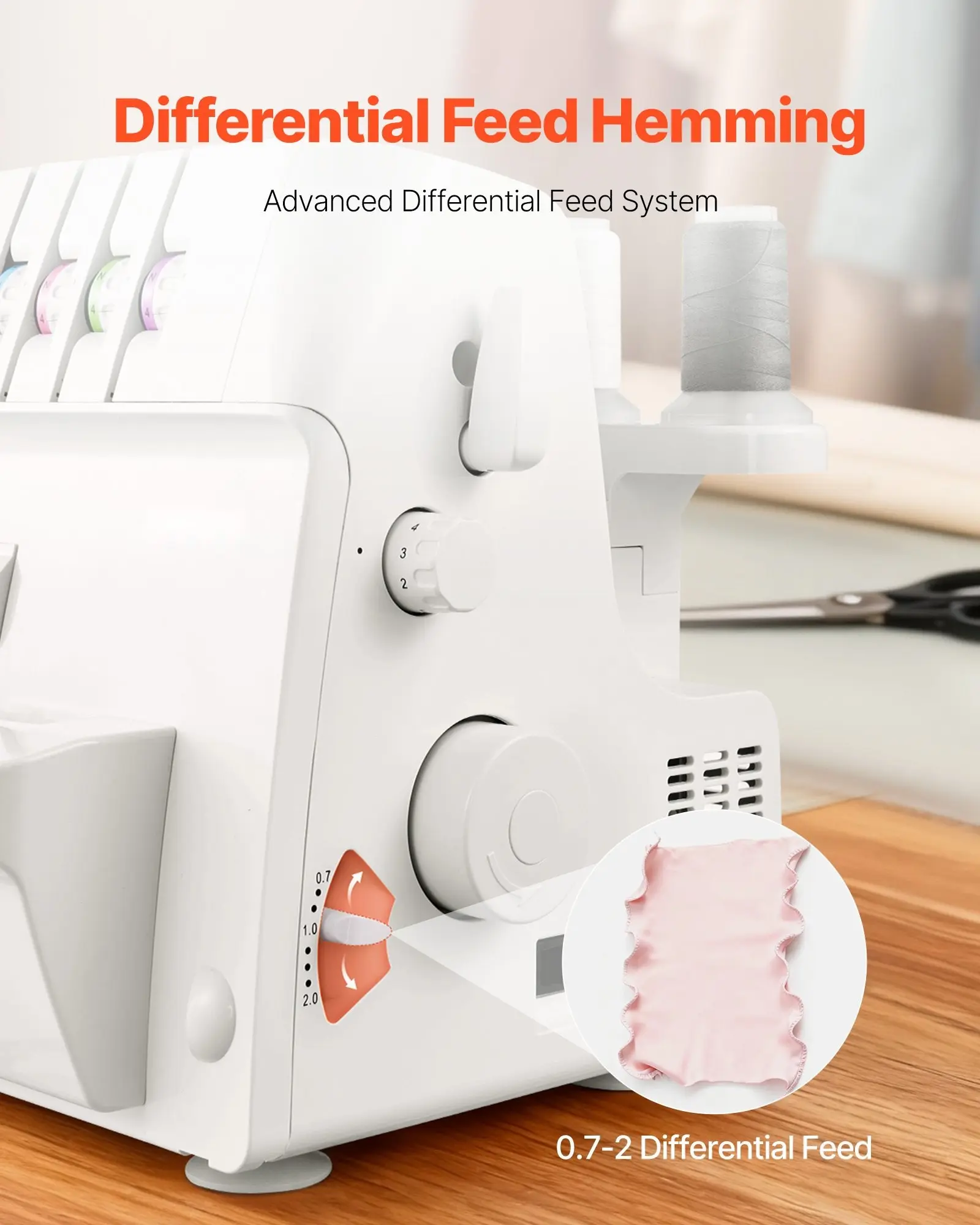 ·Upgraded Differential Feed: The well-designed 0.7â2.0 differential feed allows the overlock sewing machine to handle stretchy fabrics with ease, minimizing distortion and delivering smooth, professional-looking seams
