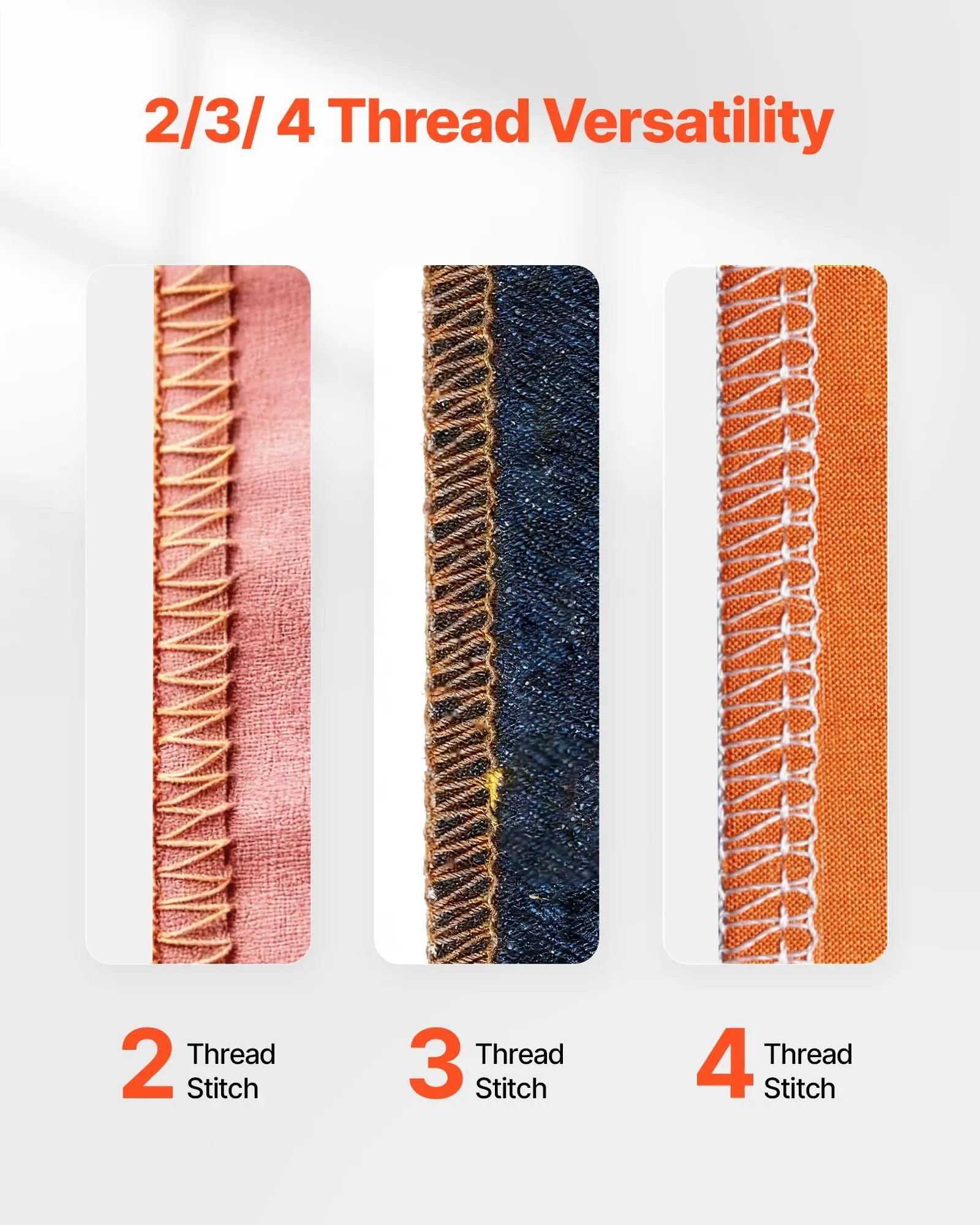 ·2/3/4-Thread Flexibility: Our serger sewing machine features easy switching between 2/3/4 threads with adjustable stitch length. Whether it's simple repairs or detailed edge finishing, it handles both with ease to meet a wide range of sewing needs